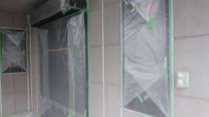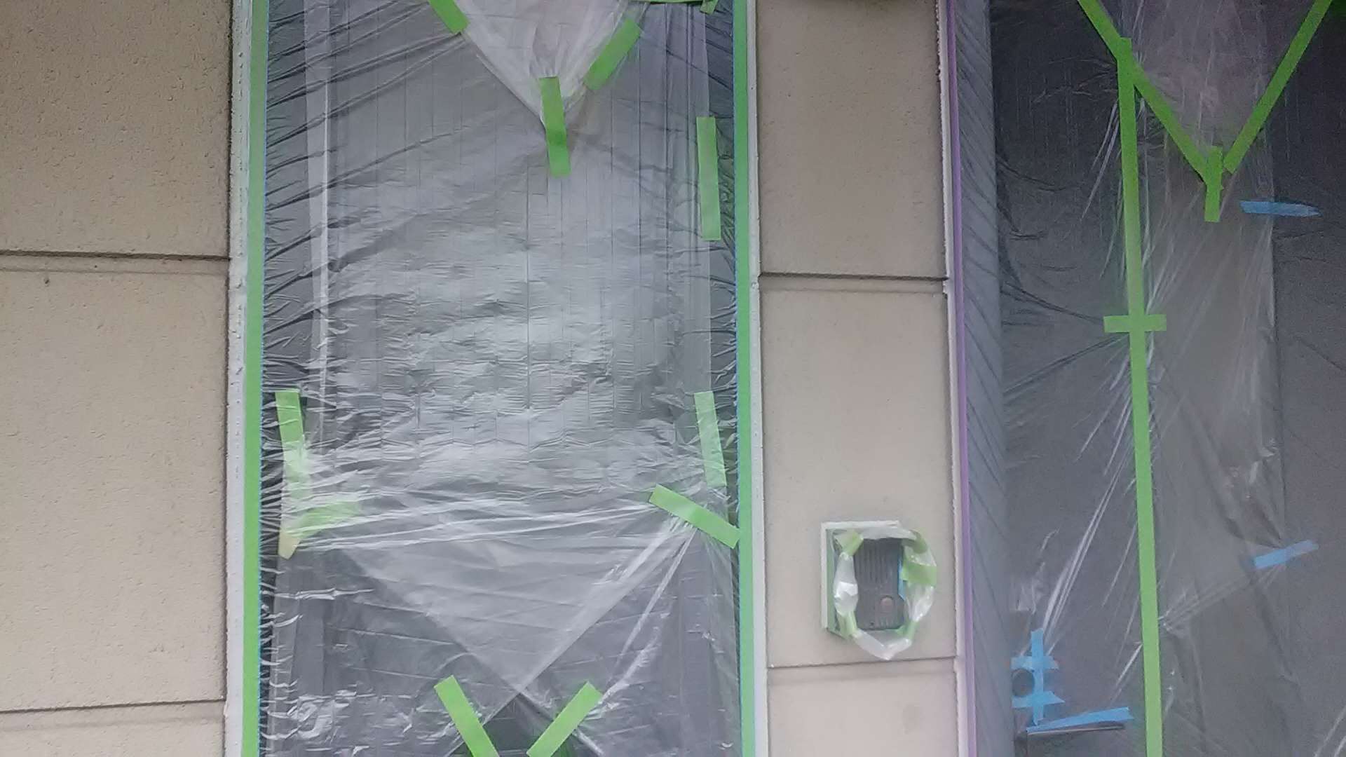 犬山市 Y様邸 ベランダウレタン塗膜防水・塀塗装工事 ベランダトップコート塗装・塀塗装作業中!