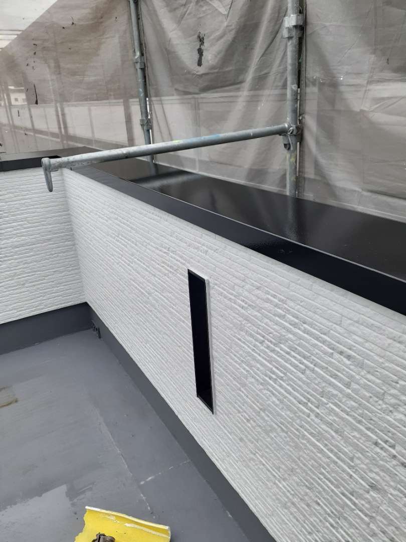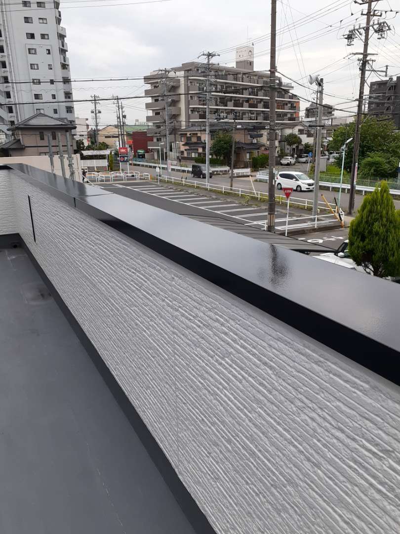 犬山市 Y様邸 ベランダウレタン塗膜防水・塀塗装工事 ベランダトップコート塗装・塀塗装作業中!
