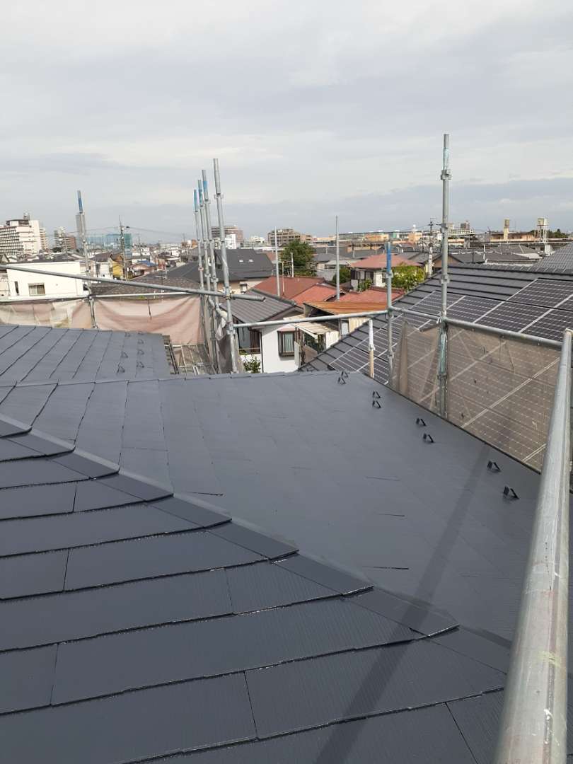 屋根の上塗り使用塗料:KFケミカル セミフロンスーパールーフ遮熱