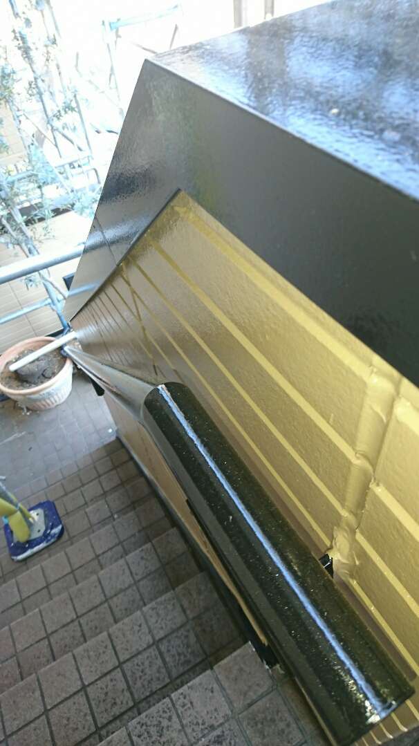 犬山市 Y様邸 ベランダウレタン塗膜防水・塀塗装工事 ベランダトップコート塗装・塀塗装作業中!