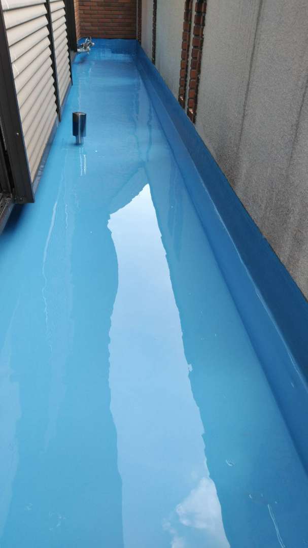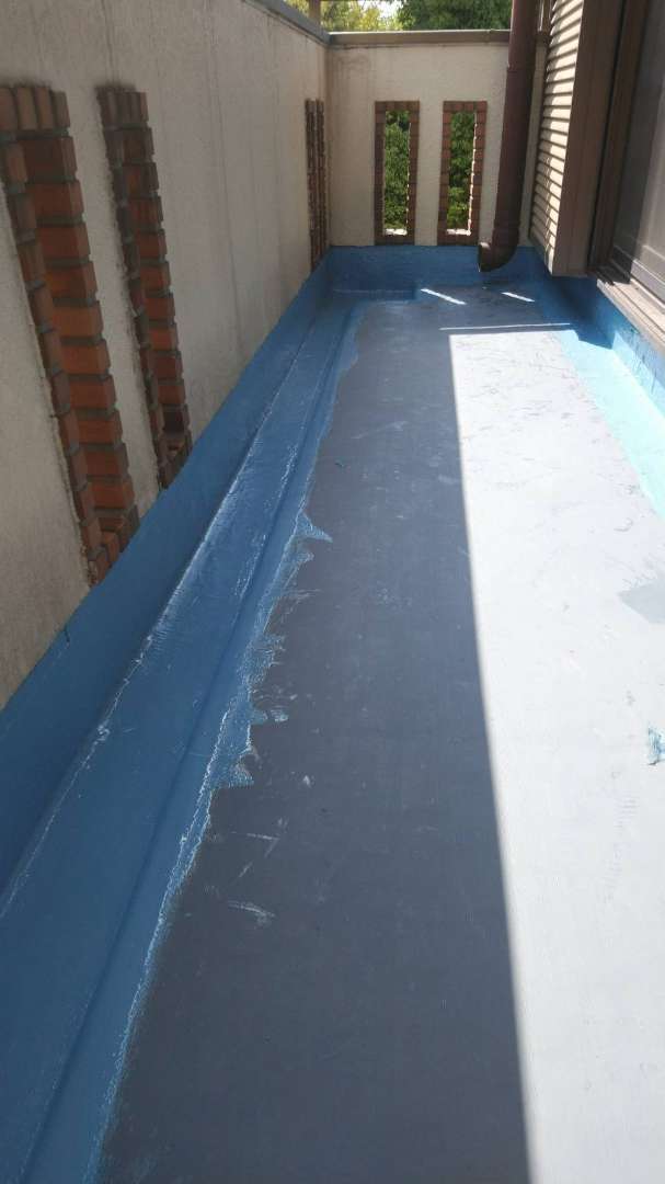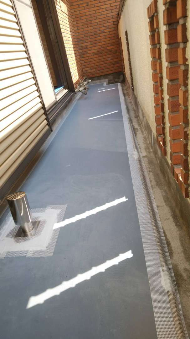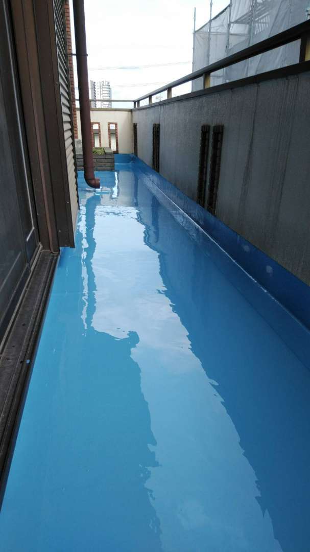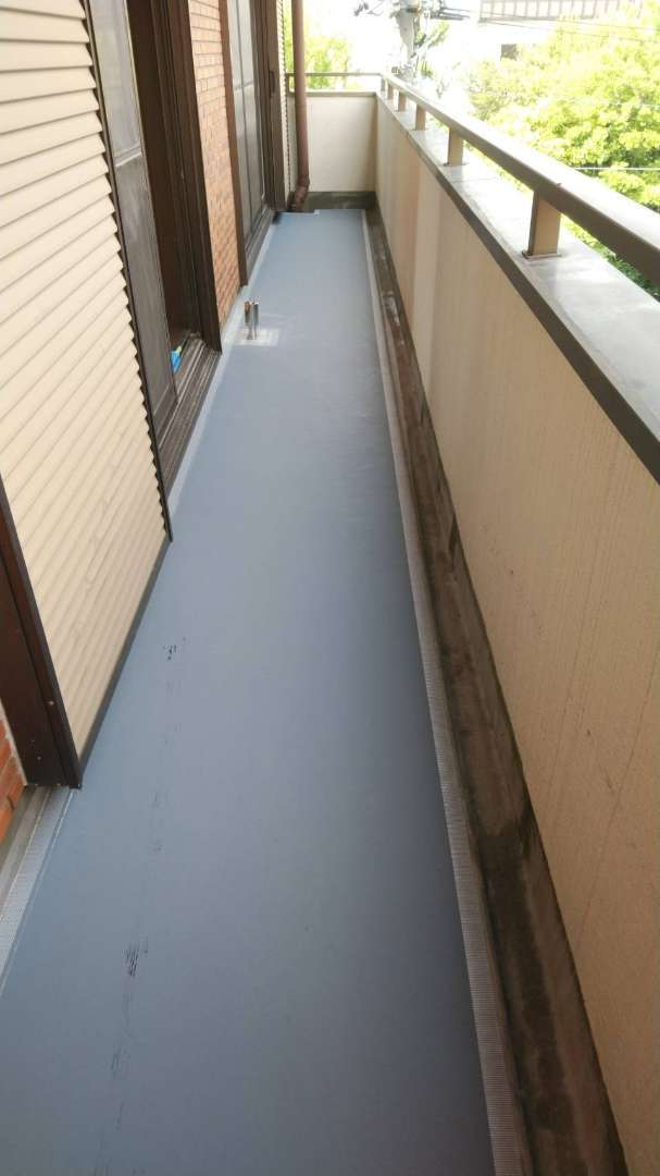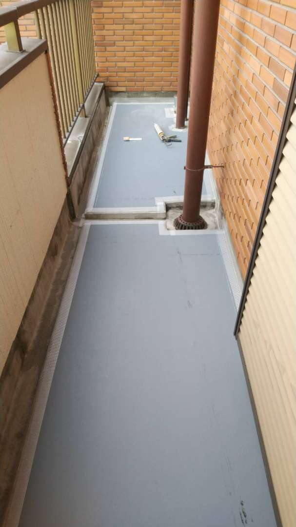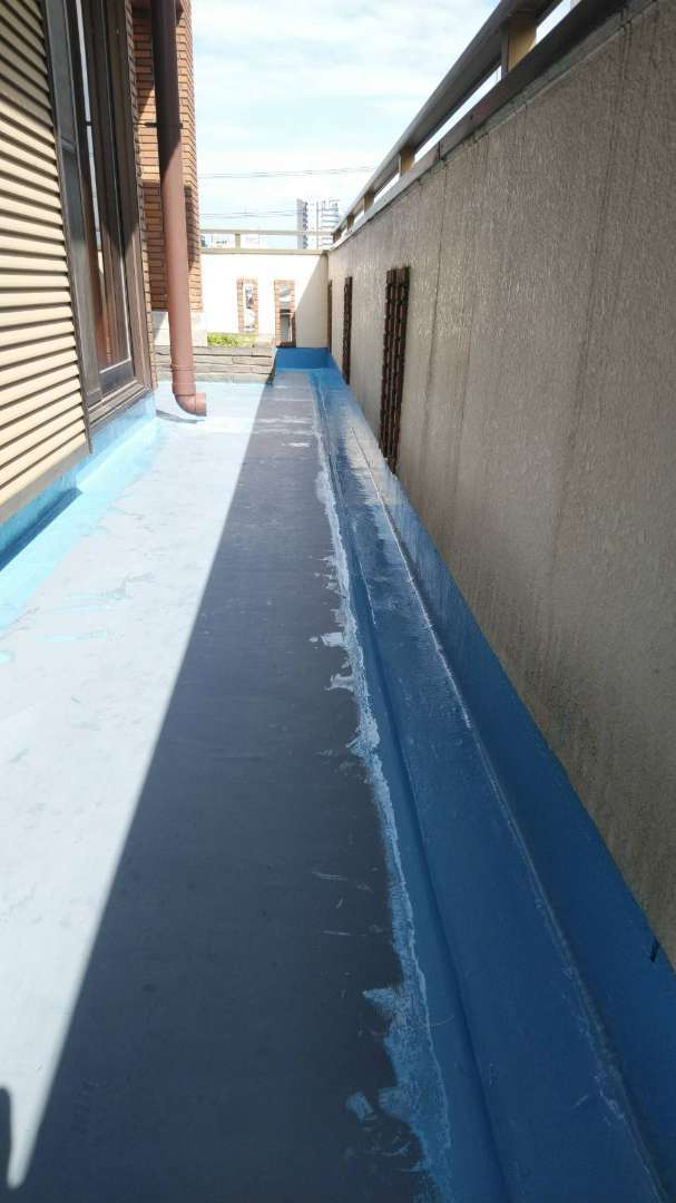 2階の立上り側溝ウレタンメッシュ入り塗装完了