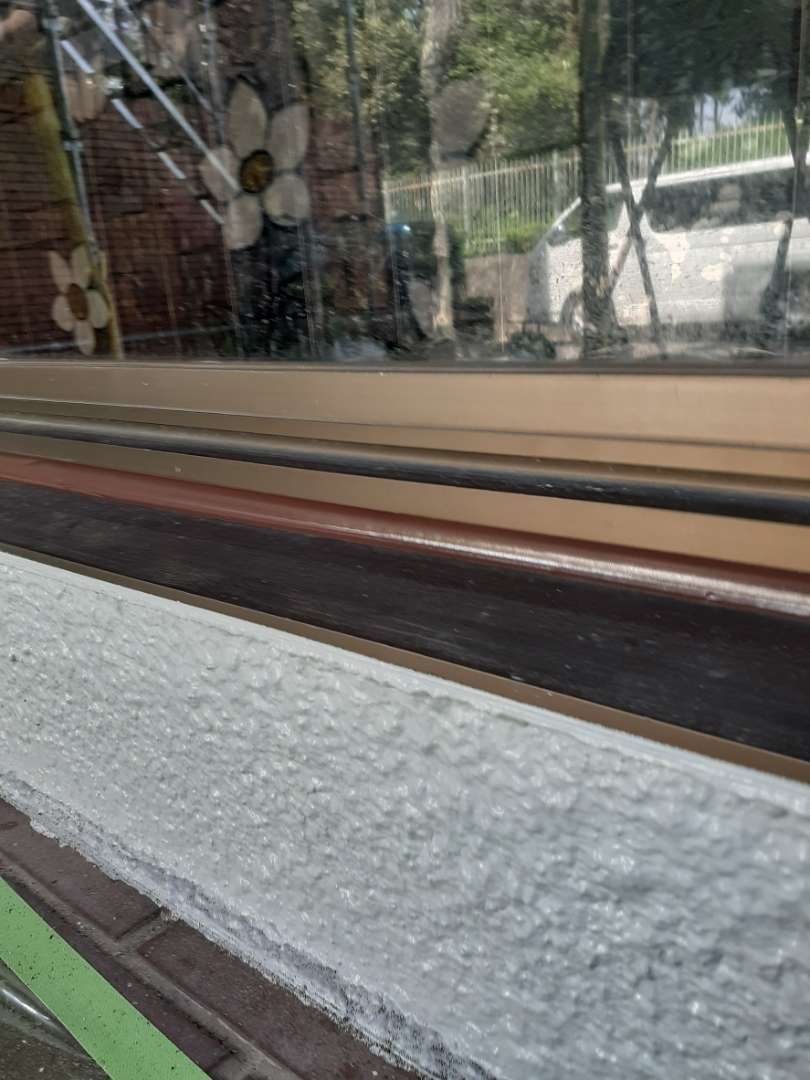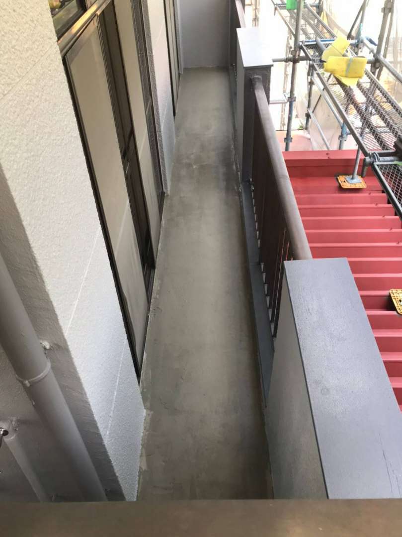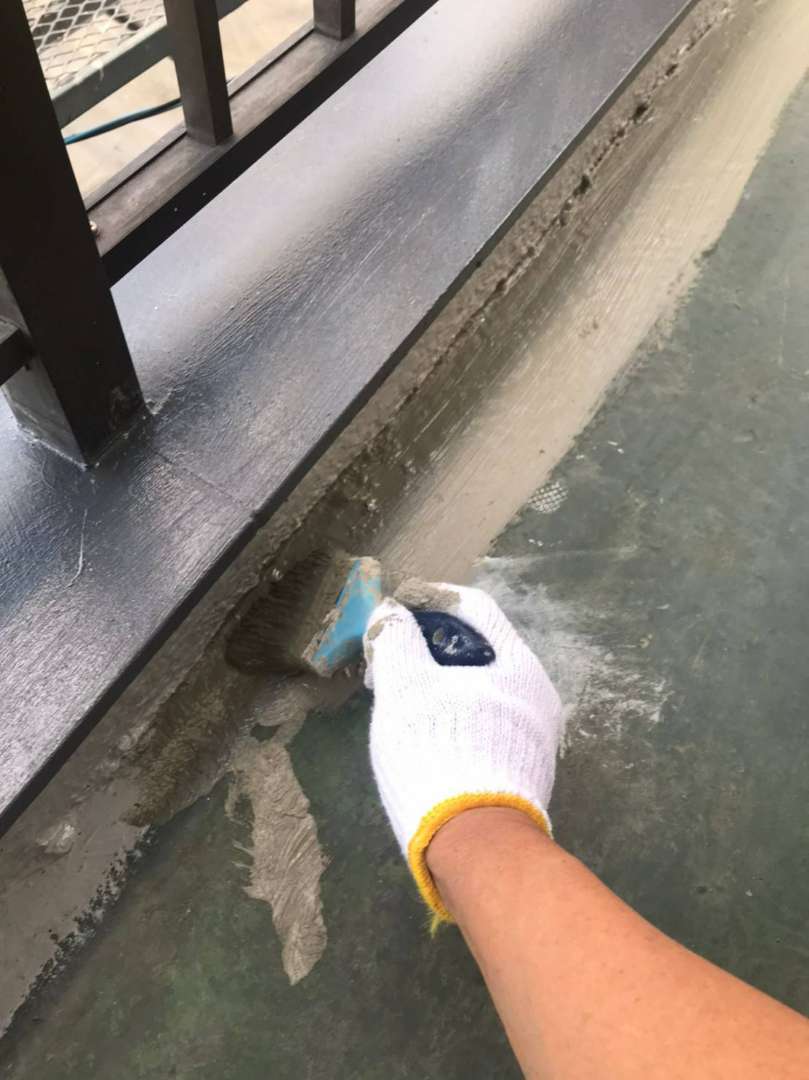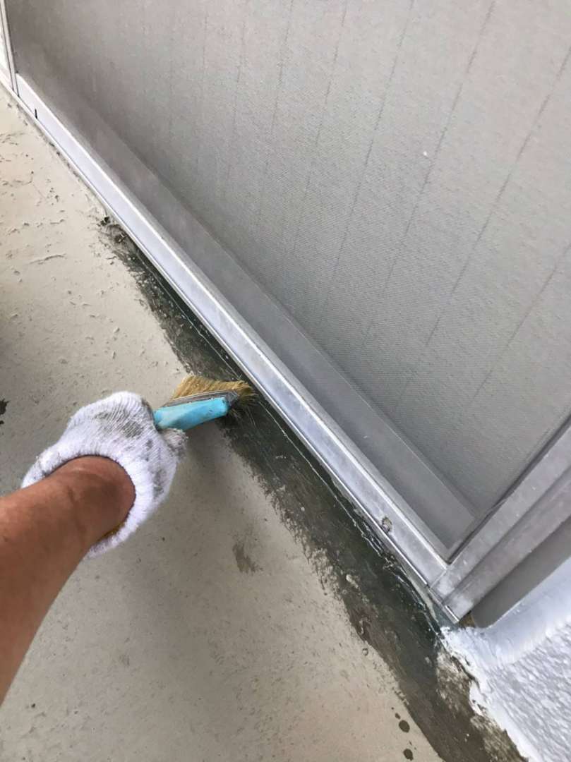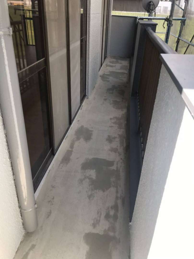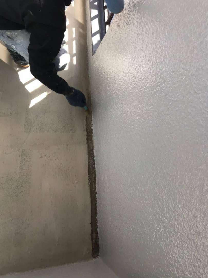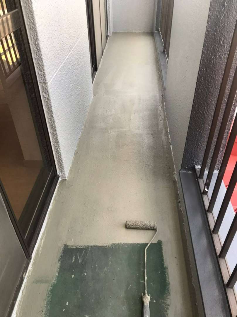 名古屋市北区、3階建てS様邸 ベランダウレタン防水工事の下地処理・プライマー塗布作業です。