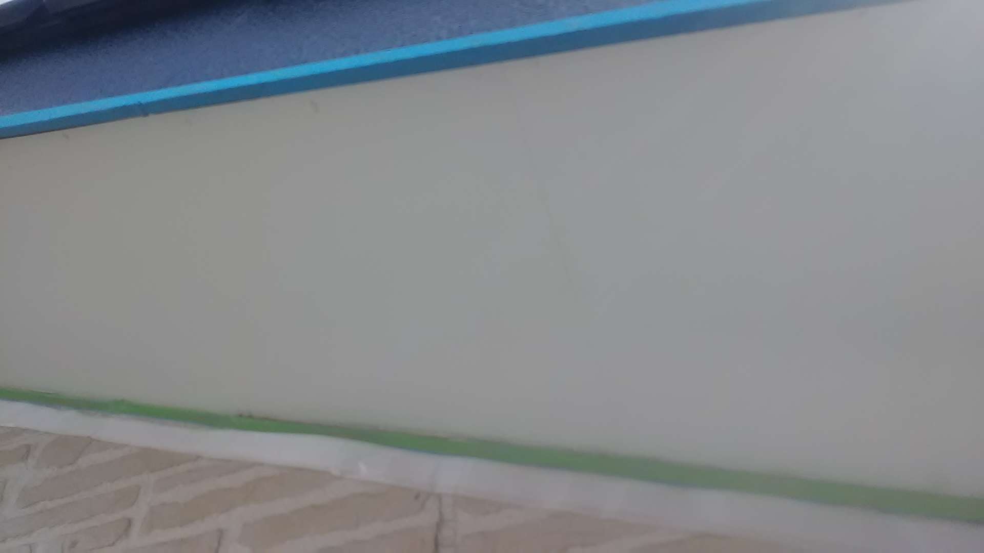 犬山市 Y様邸 ベランダウレタン塗膜防水・塀塗装工事 ベランダトップコート塗装・塀塗装作業中!
