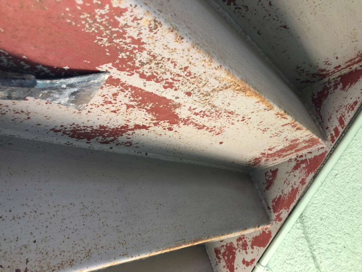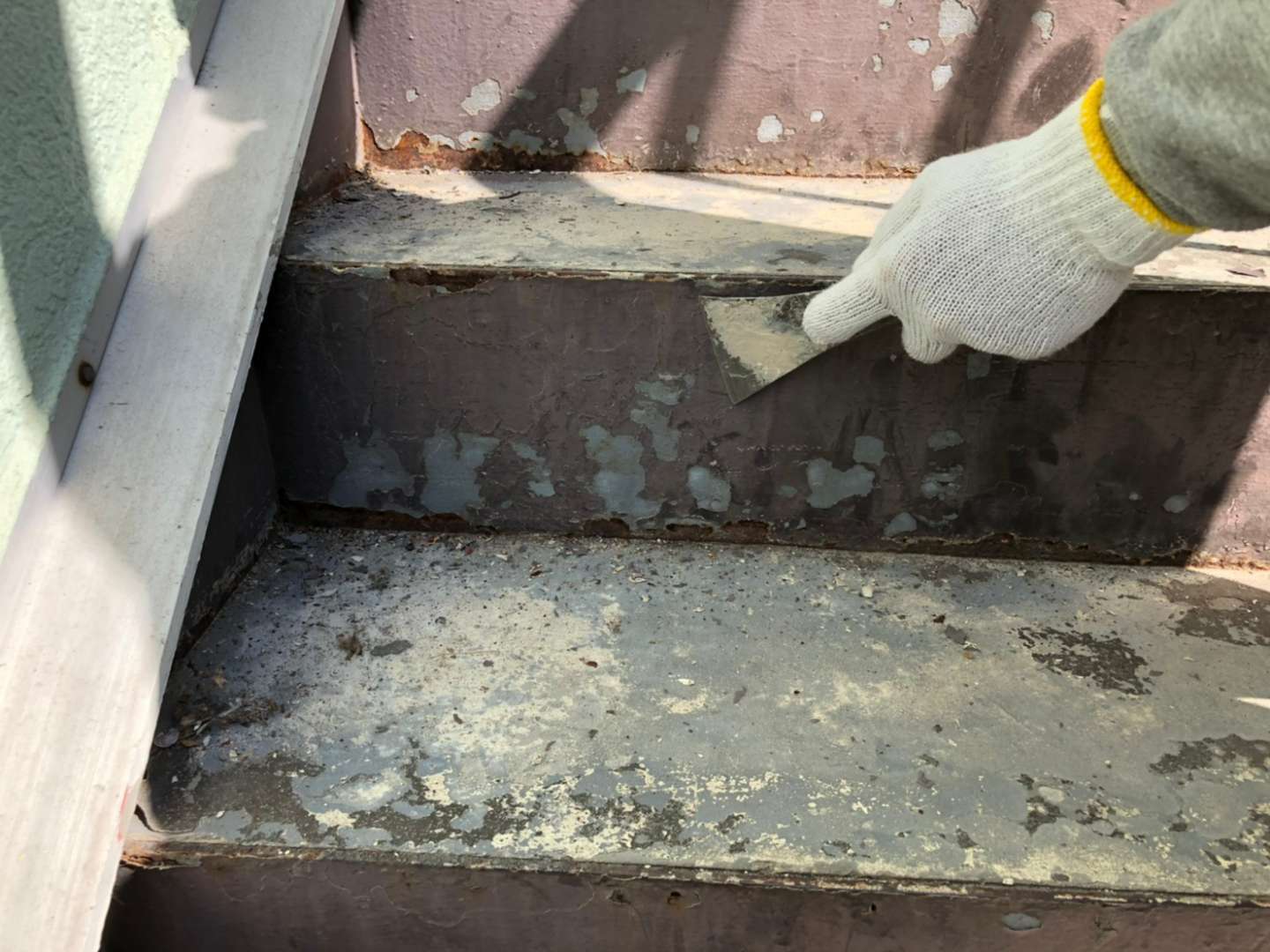 ケレン作業→錆止め塗装作業→上塗り2回塗り作業→平場部分トップコート塗装