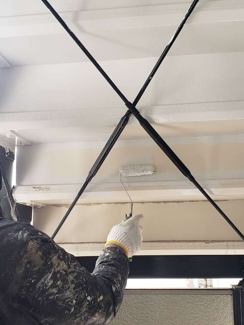 付帯部塗装作業中写真