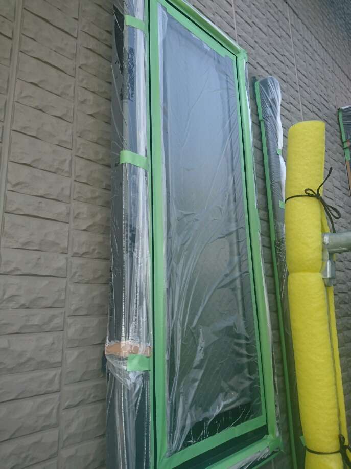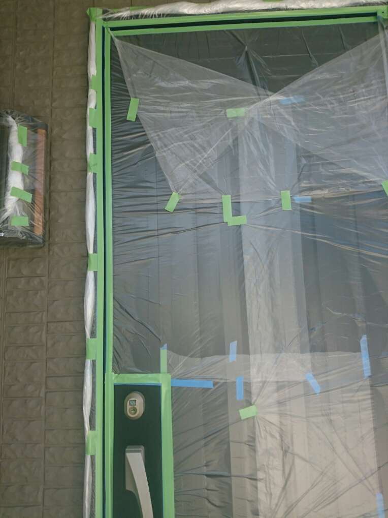 名古屋市名東区 K様邸 外壁塗り替え工事 洗浄作業が終わり、今日は養生作業です! 洗浄作...