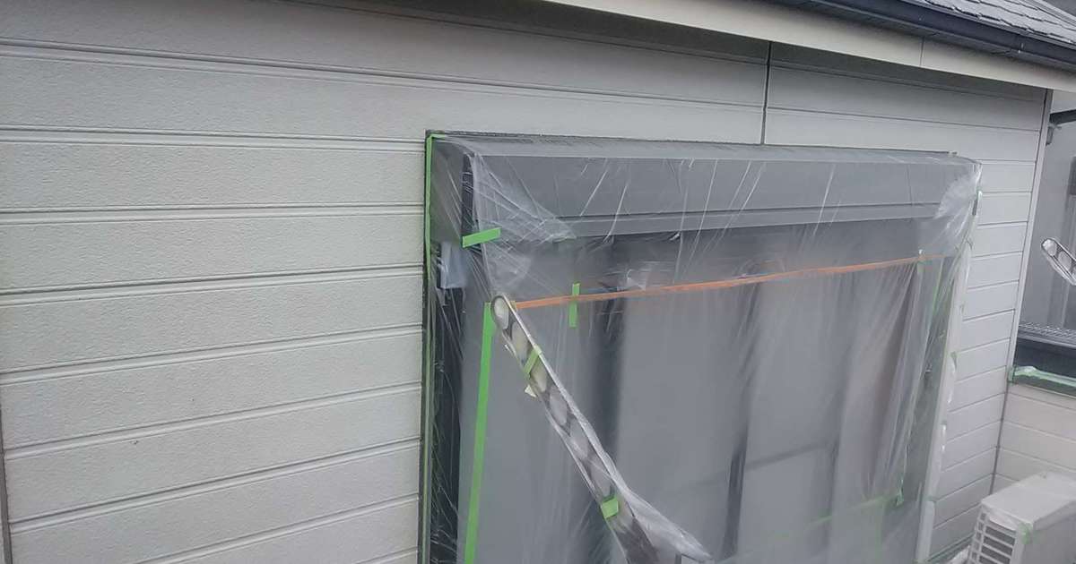 名古屋市名東区 K様邸 外壁塗り替え工事 洗浄作業が終わり、今日は養生作業です! 洗浄作...