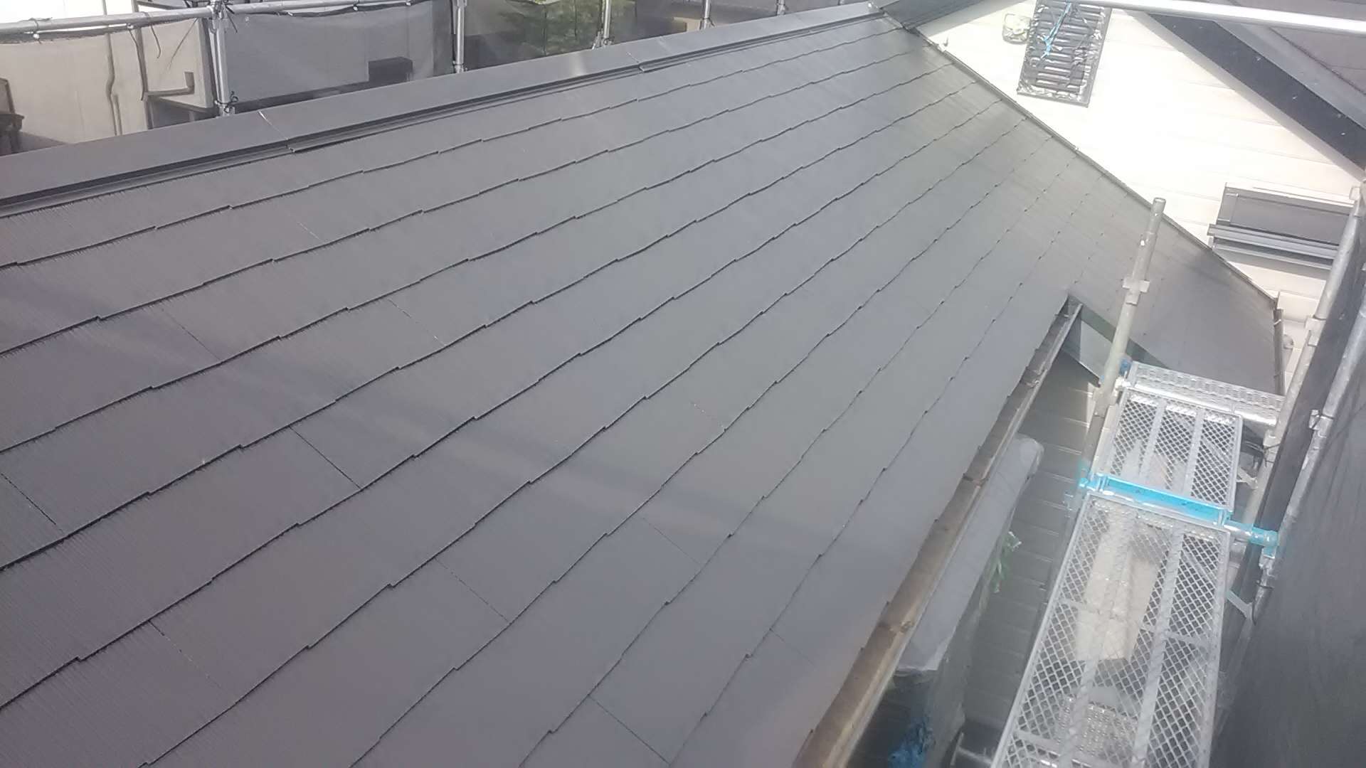 屋根の中塗り作業、壁上塗り作業完了しました!