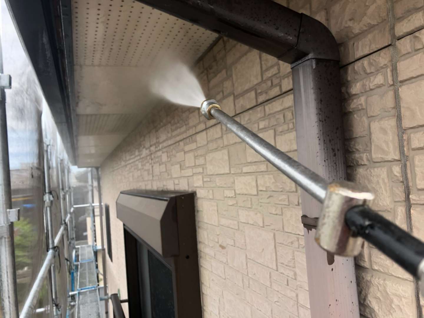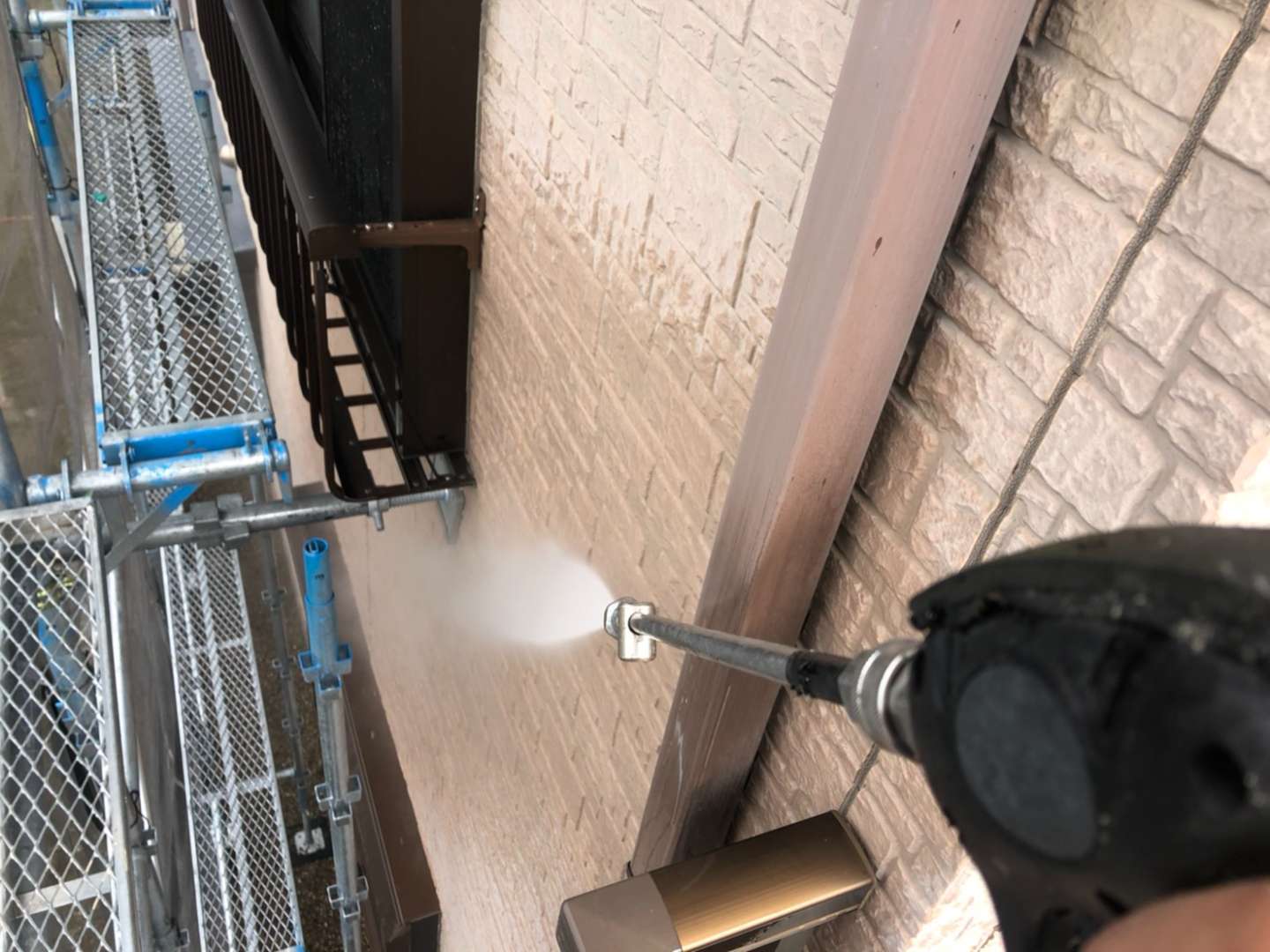 名古屋市名東区 K様邸 外壁塗り替え工事 洗浄作業が終わり、今日は養生作業です! 洗浄作...