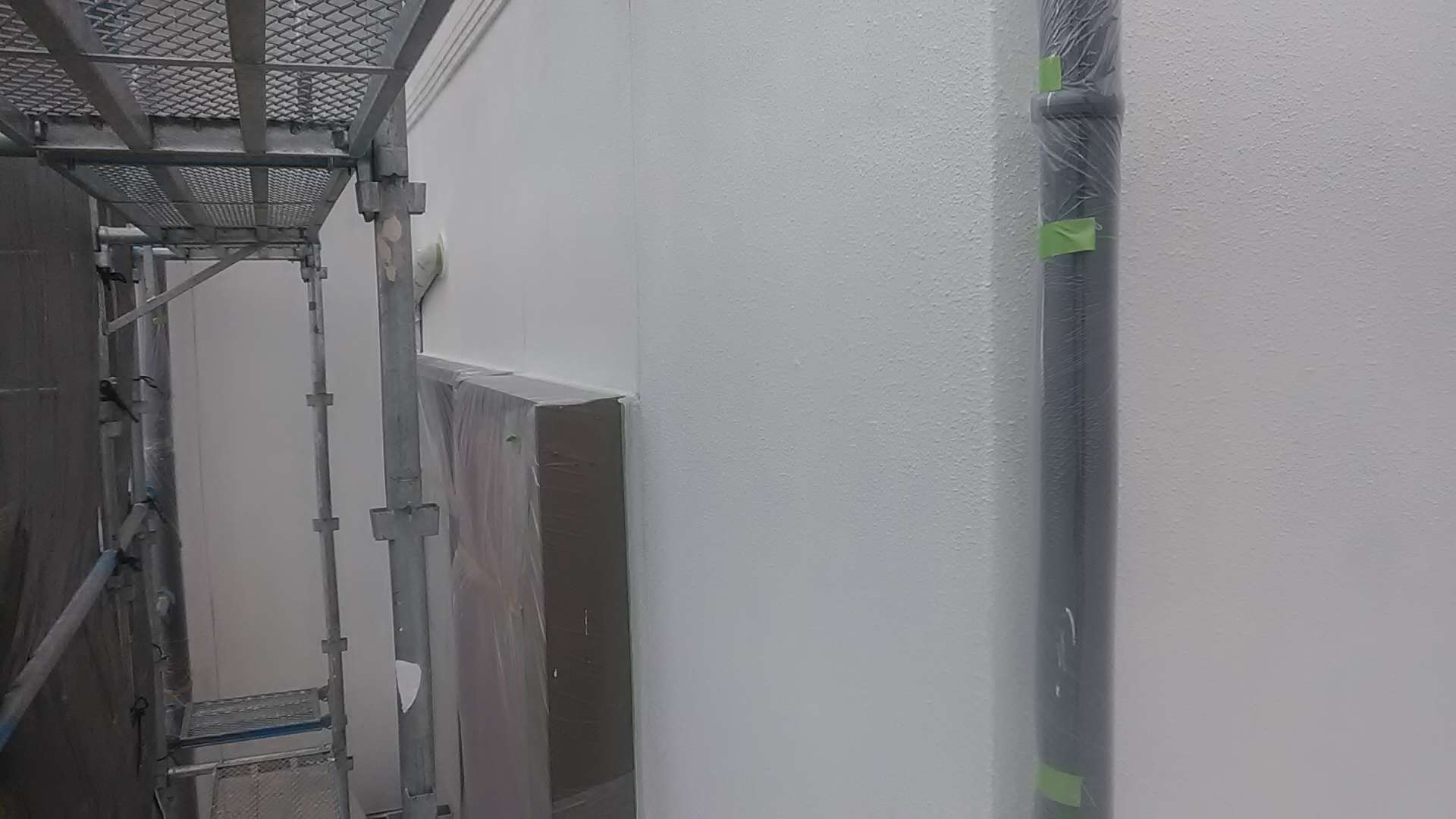 昨日までの作業で、外壁の下塗り作業と軒天塗装が完了しています!