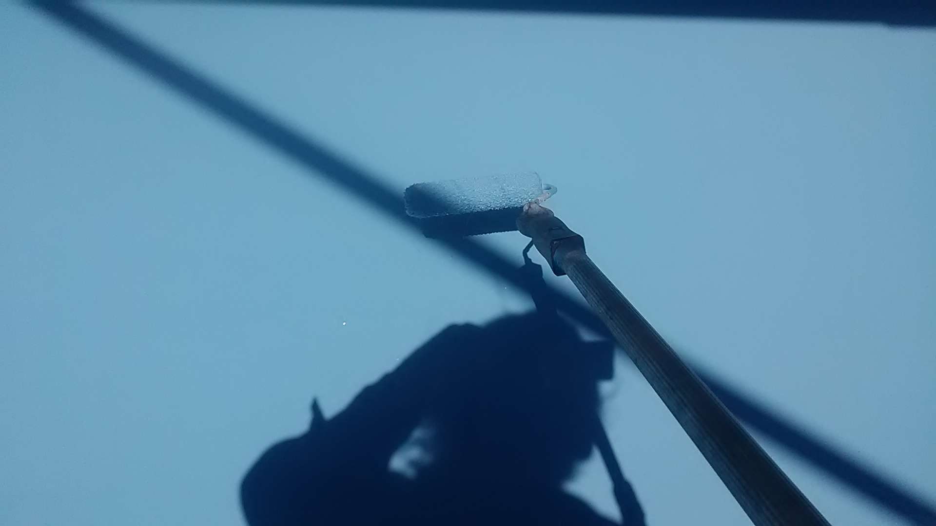 今日の作業は、ベランダのトップコート塗装と最終点検作業です!