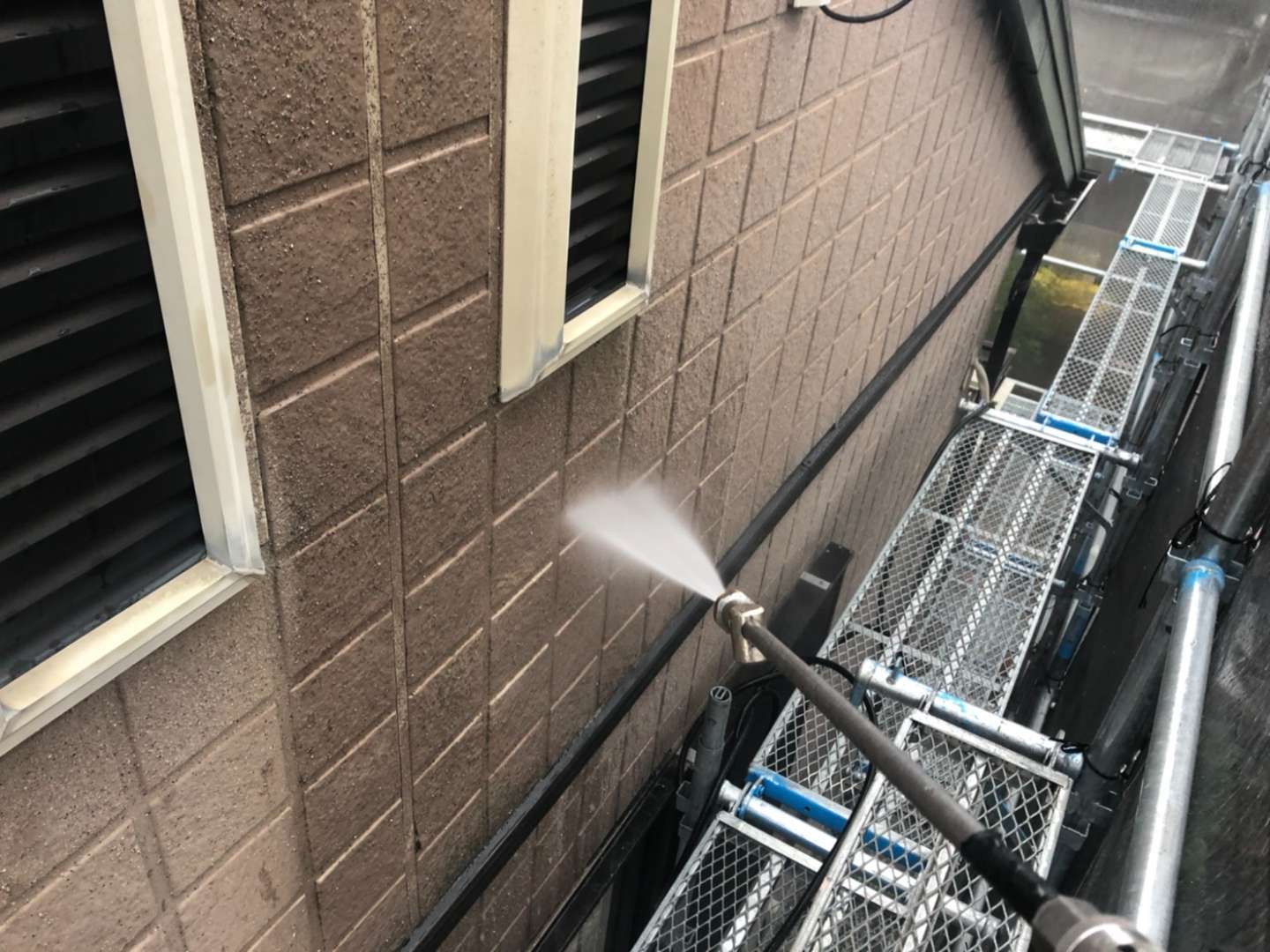 名古屋市名東区 K様邸 外壁塗り替え工事 洗浄作業が終わり、今日は養生作業です! 洗浄作...