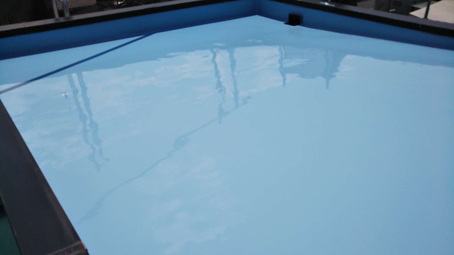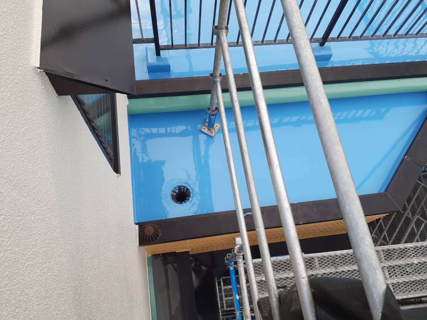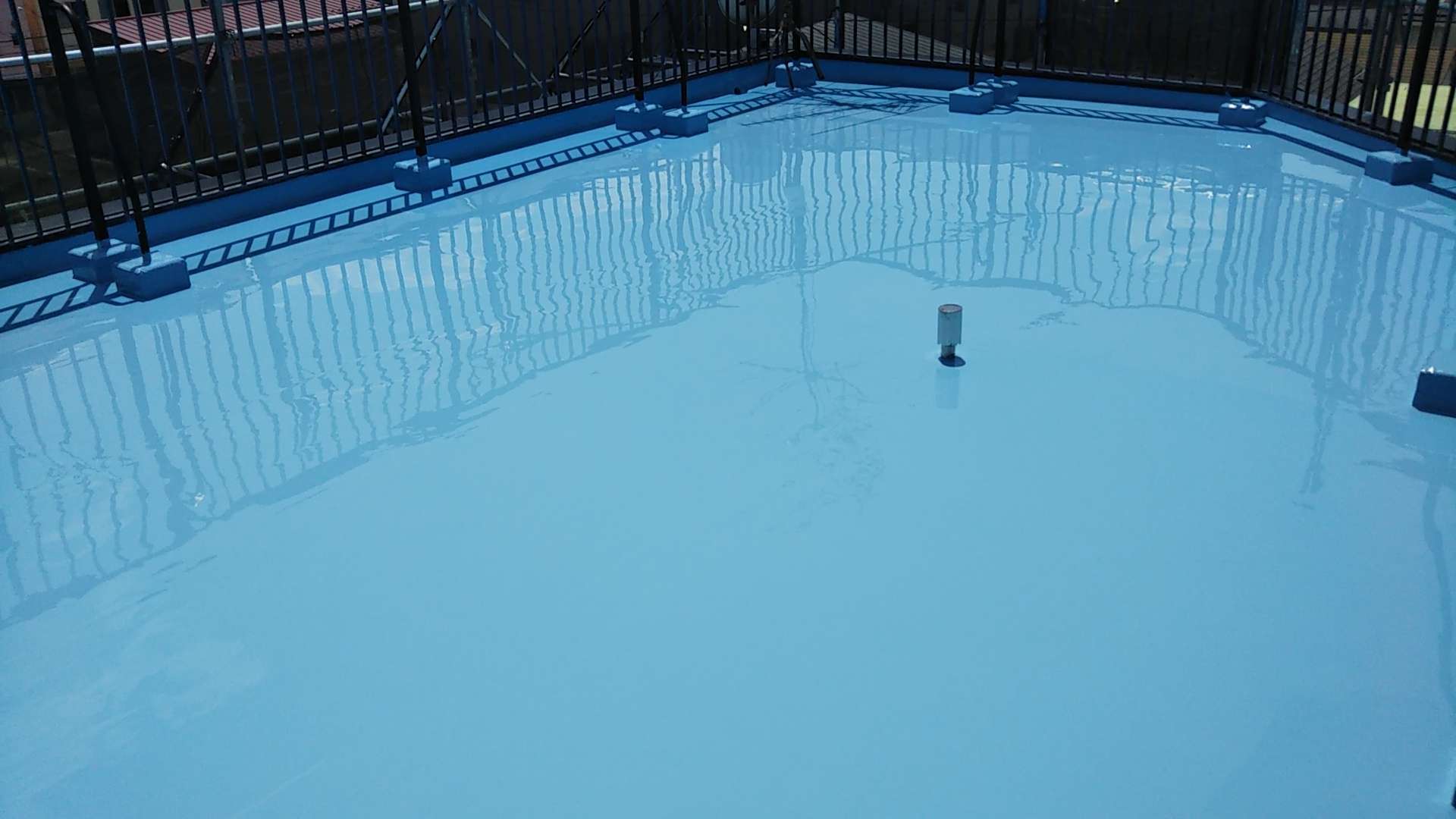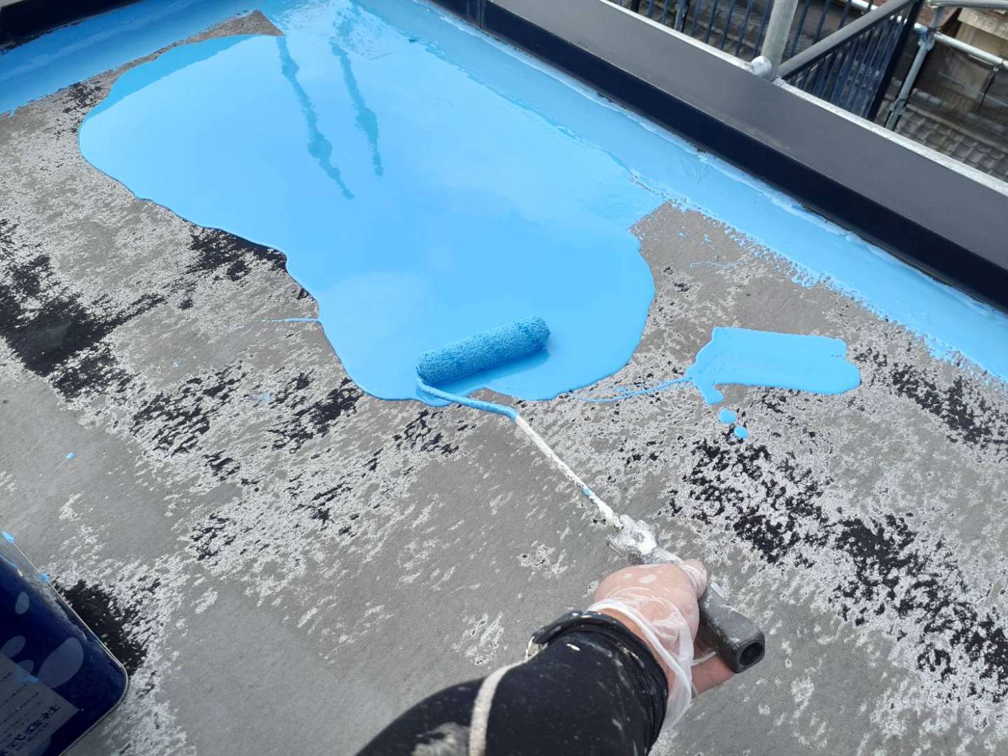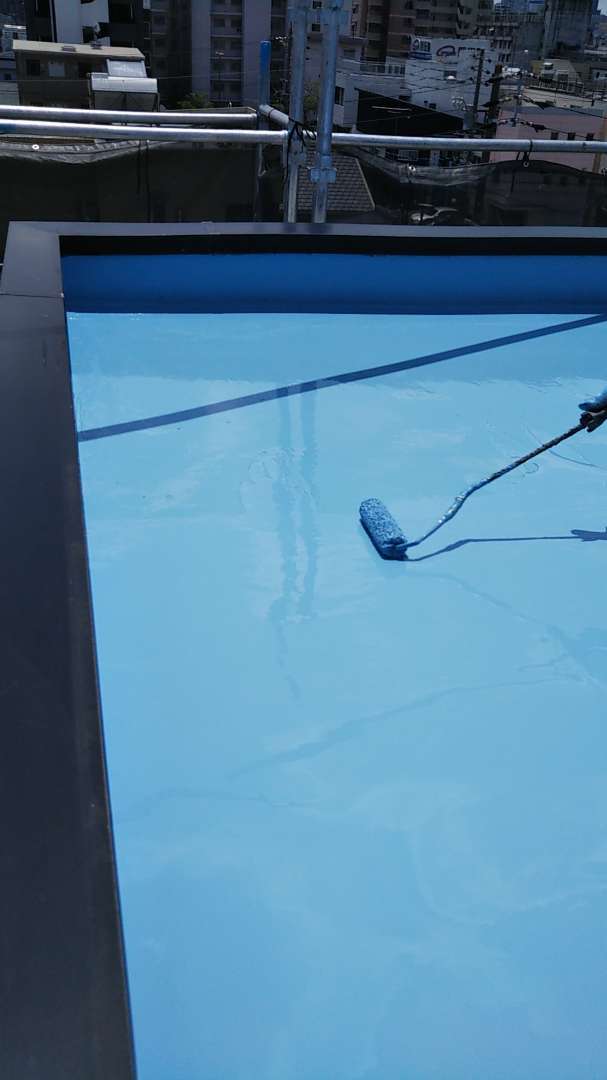 昨日までの作業で、屋上・ベランダ・ペントハウスのウレタン樹脂二層目まで