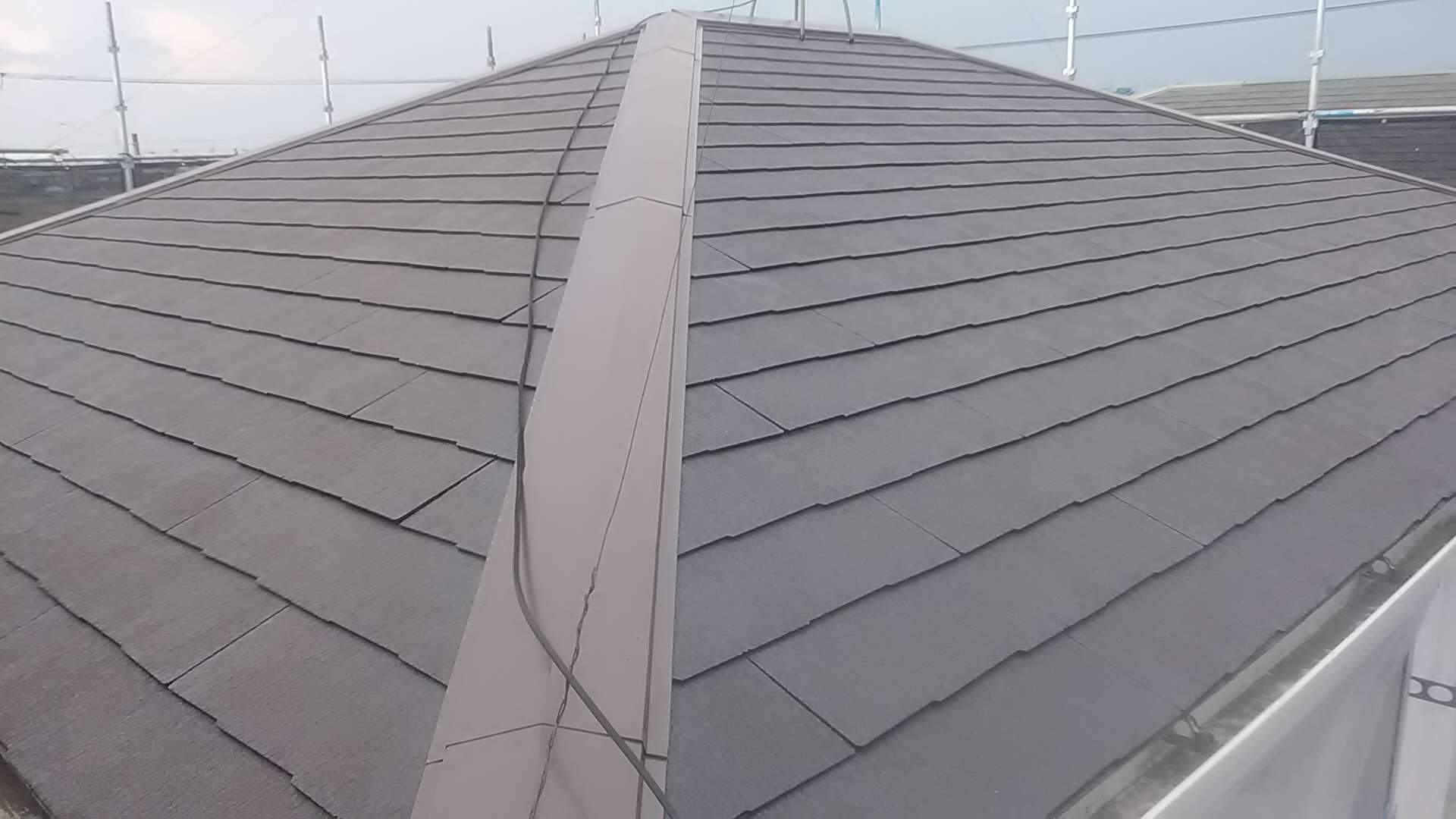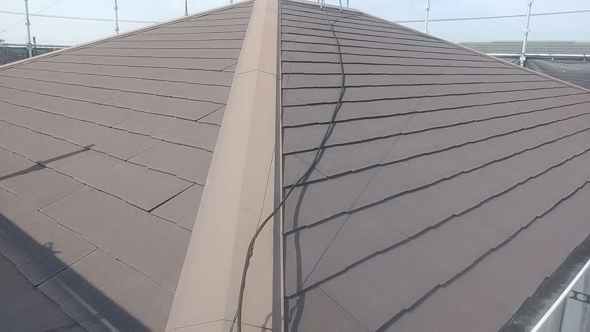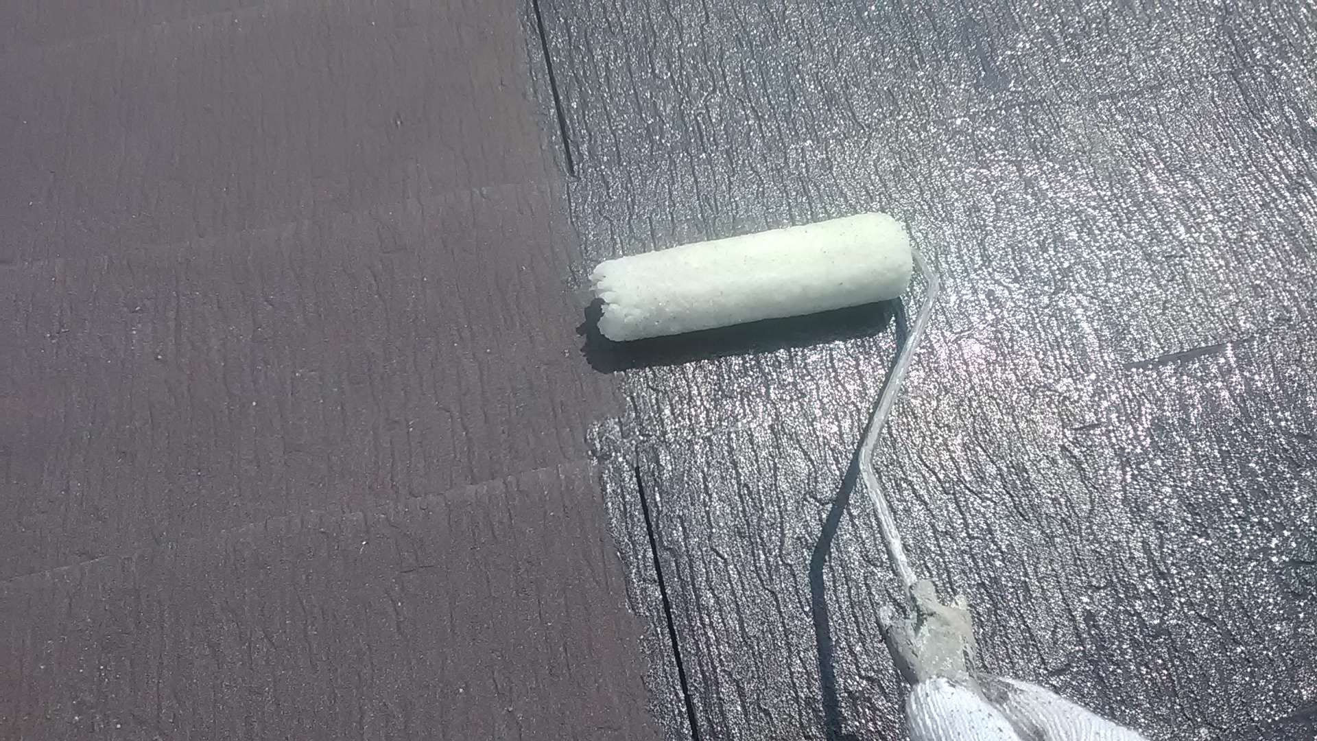 今日の作業は、屋根の中塗り作業・付帯部塗装作業予定です!