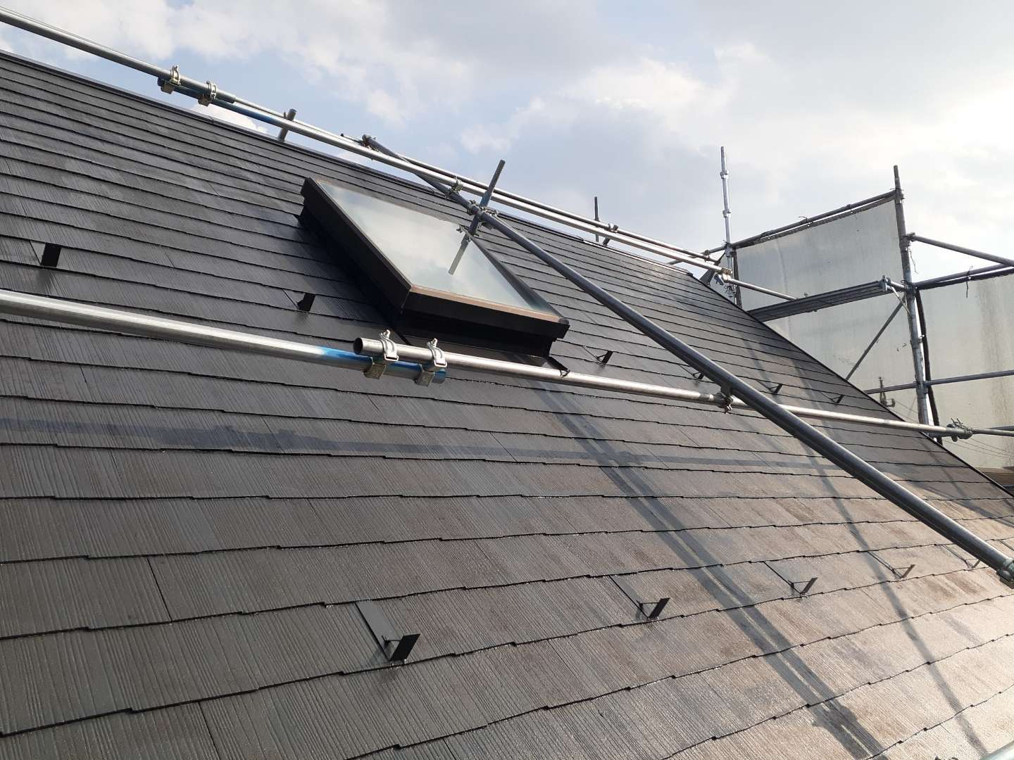 昨日の作業で外壁の中塗り・軒天塗装・屋根の中塗り作業が完了しました。