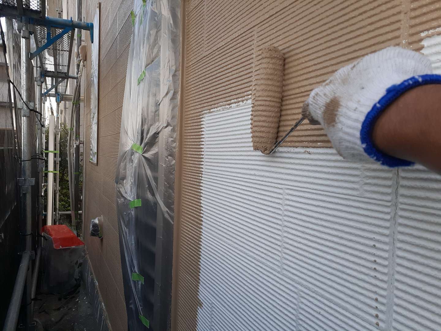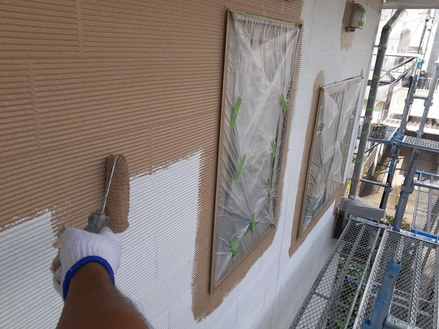 今日の作業は、外壁の上塗り塗装作業予定です!