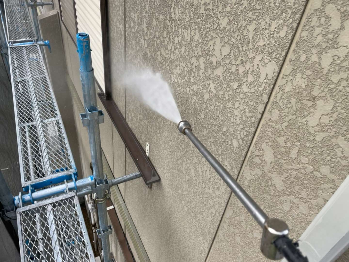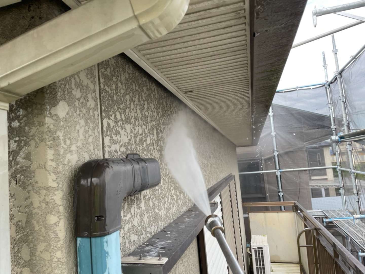 名古屋市名東区 K様邸 外壁塗り替え工事 洗浄作業が終わり、今日は養生作業です! 洗浄作...
