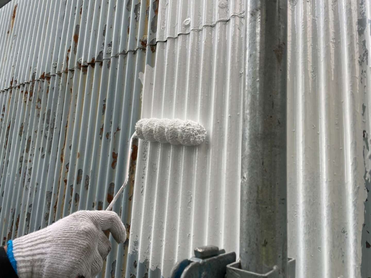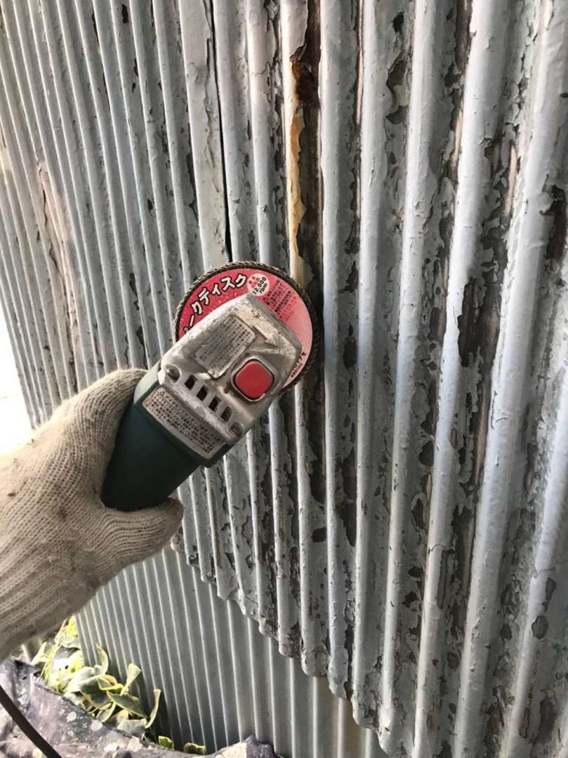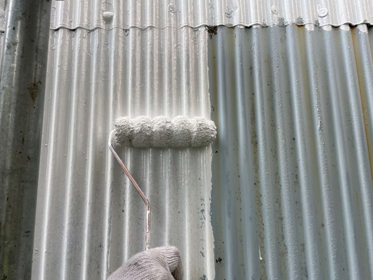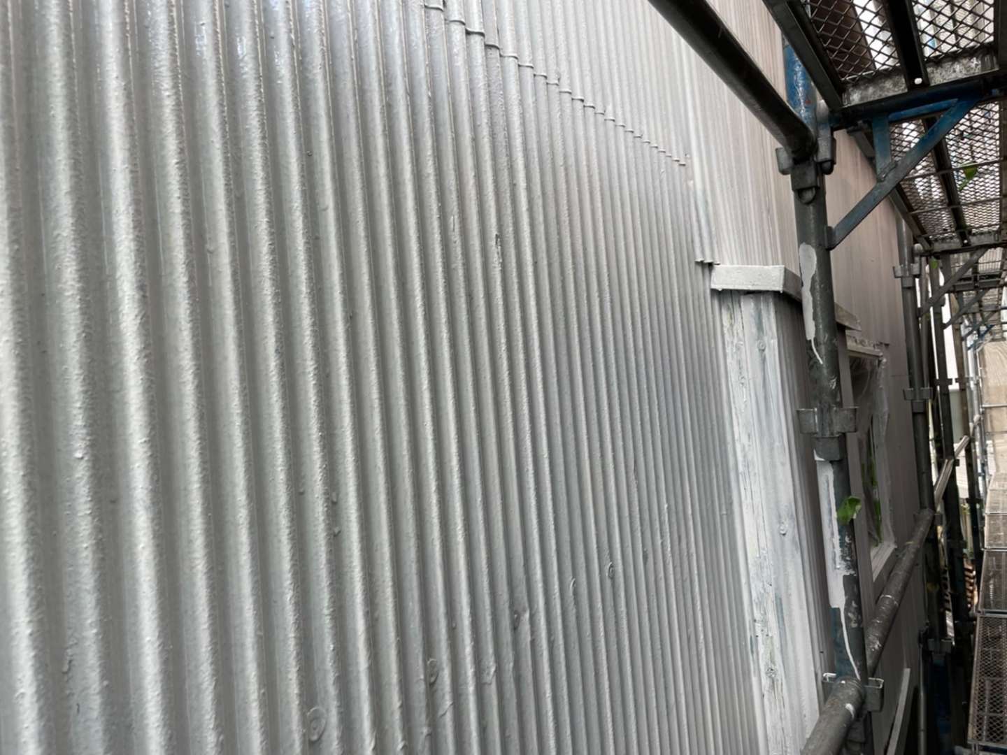 H様邸お隣宅のトタンのケレン作業・洗浄作業・下塗り作業が完了しています。