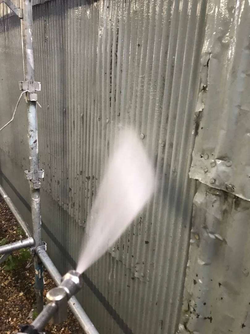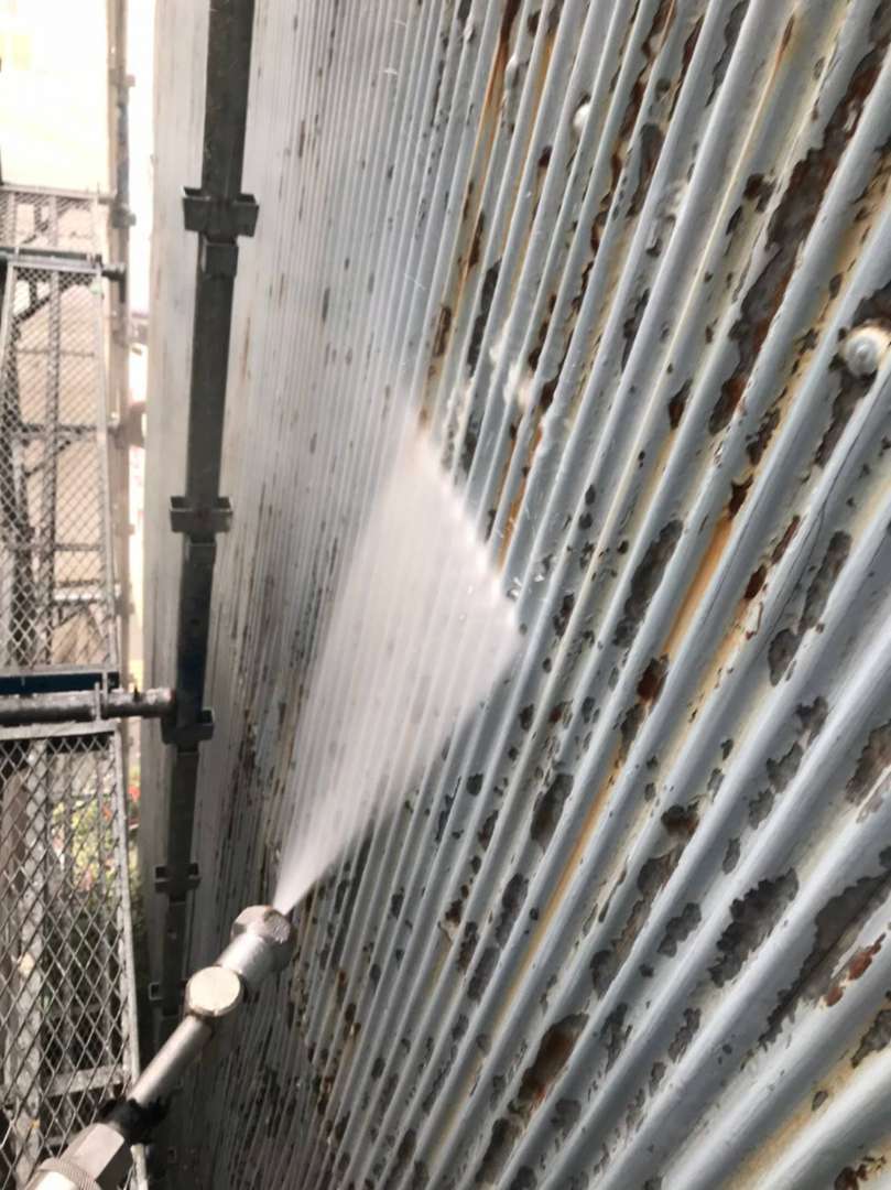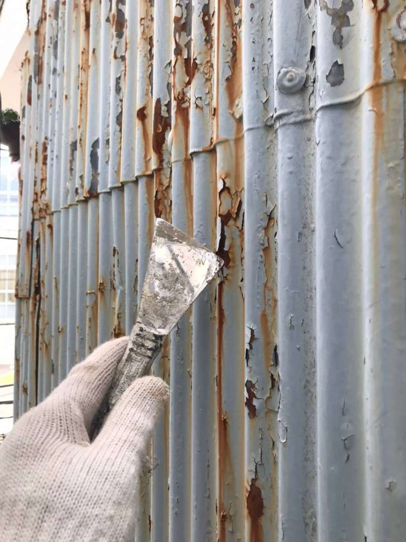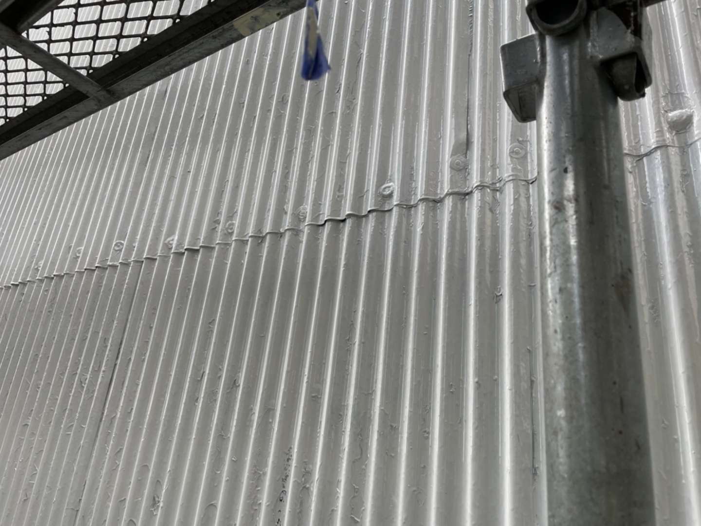 H様邸お隣宅のトタンのケレン作業・洗浄作業・下塗り作業が完了しています。