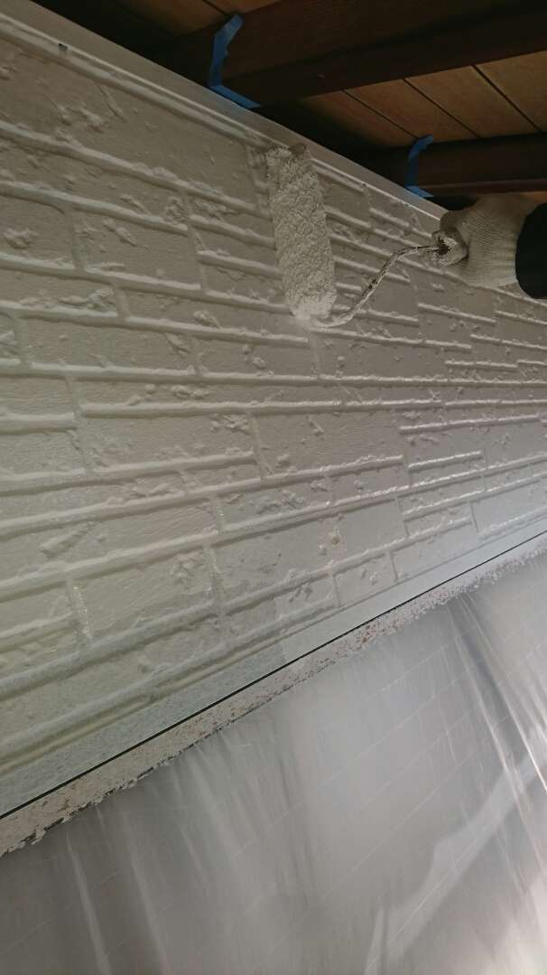 昨日の作業は、外壁の下塗り二回目塗装作業でした!