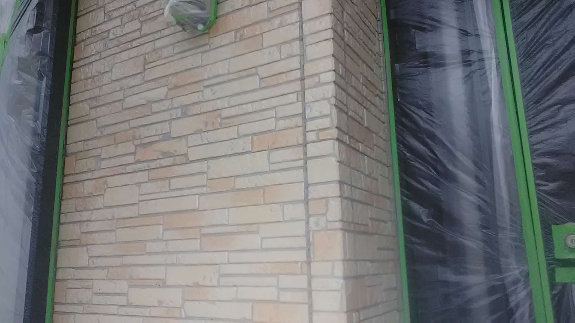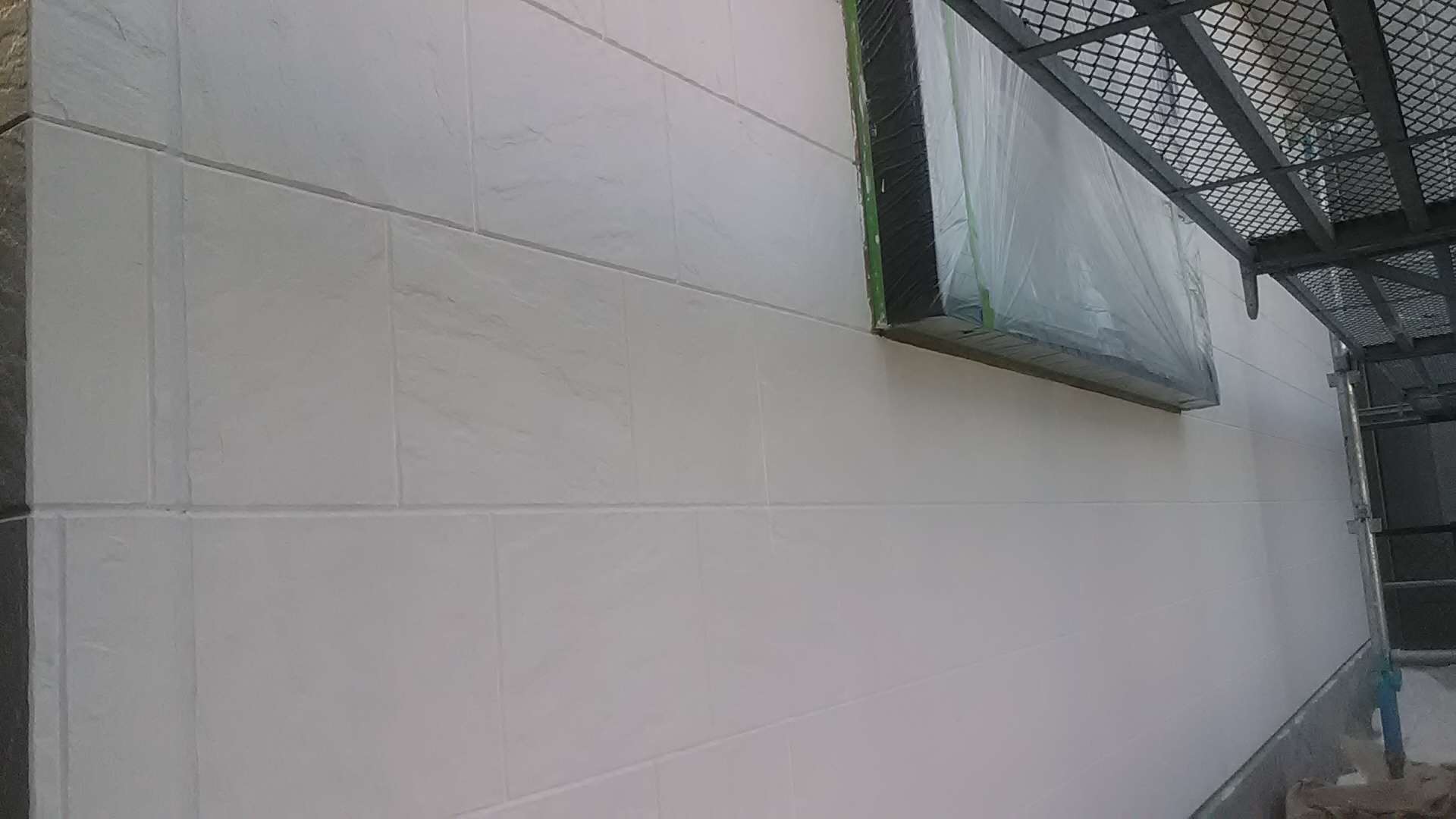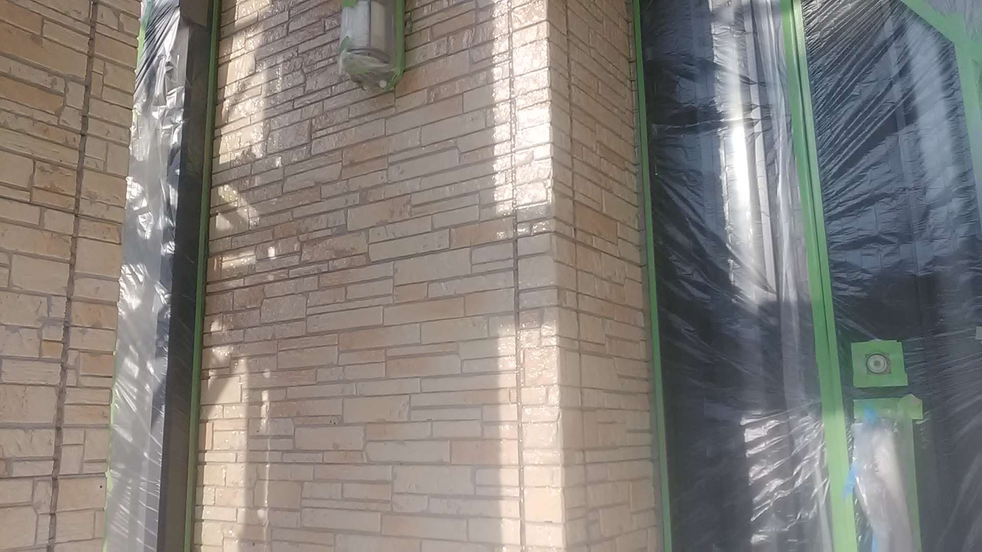 昨日までの作業で、養生作業・外壁の下塗り作業・軒天塗装作業・クリヤー部下塗り塗装・クリヤー一回目塗装作業・中塗り作業塗装作業が完了しています!