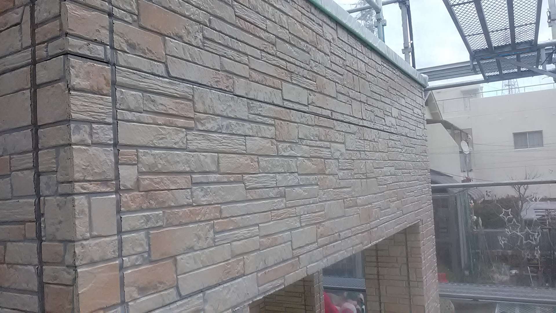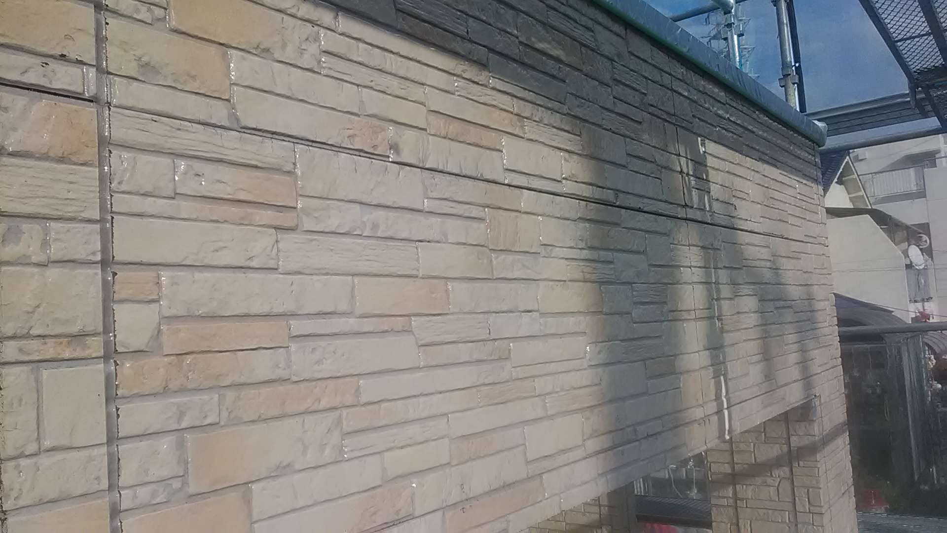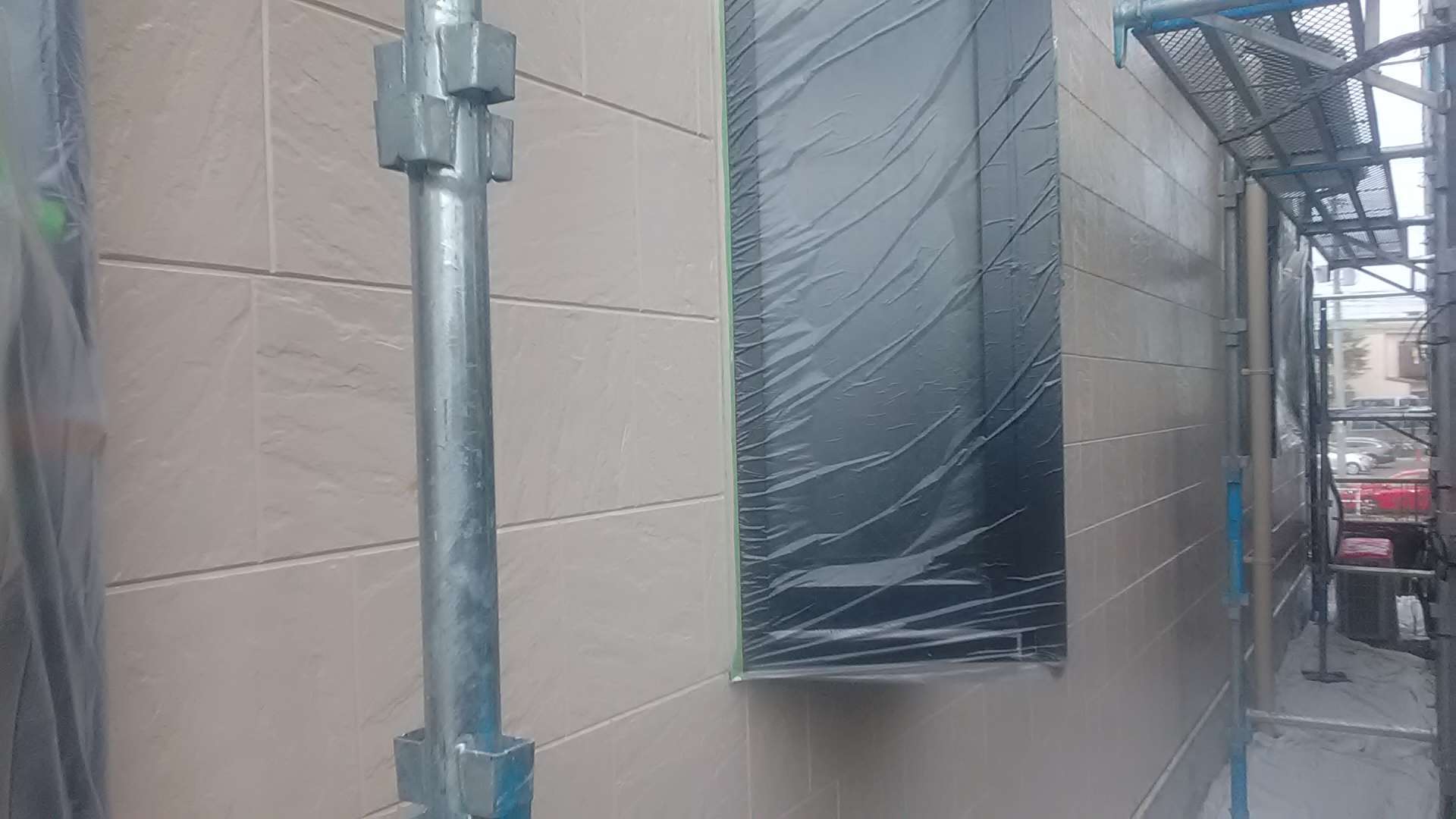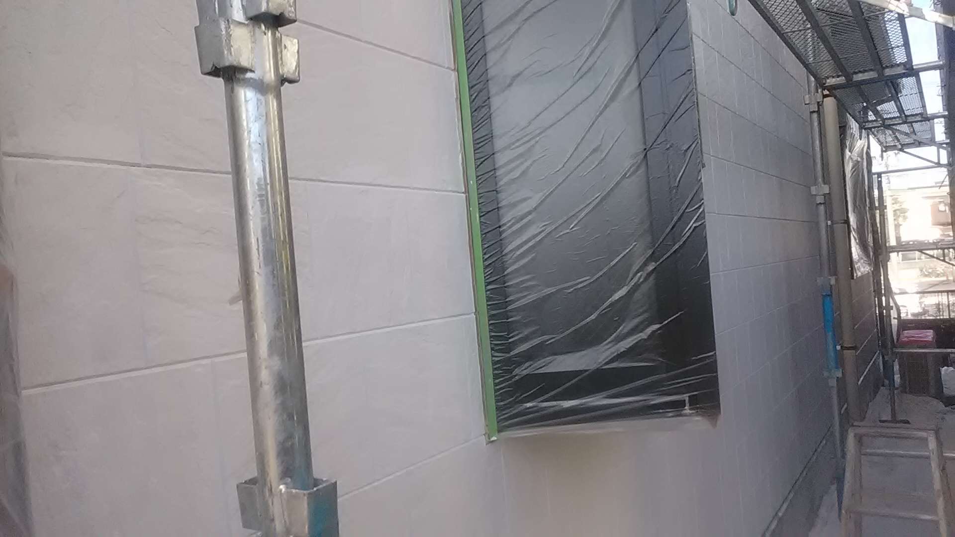 昨日までの作業で、養生作業・外壁の下塗り作業・軒天塗装作業・クリヤー部下塗り塗装・クリヤー一回目塗装作業・中塗り作業塗装作業が完了しています!