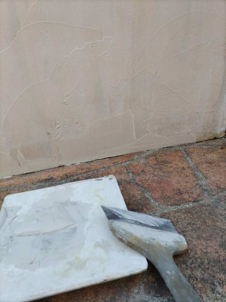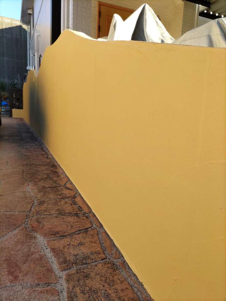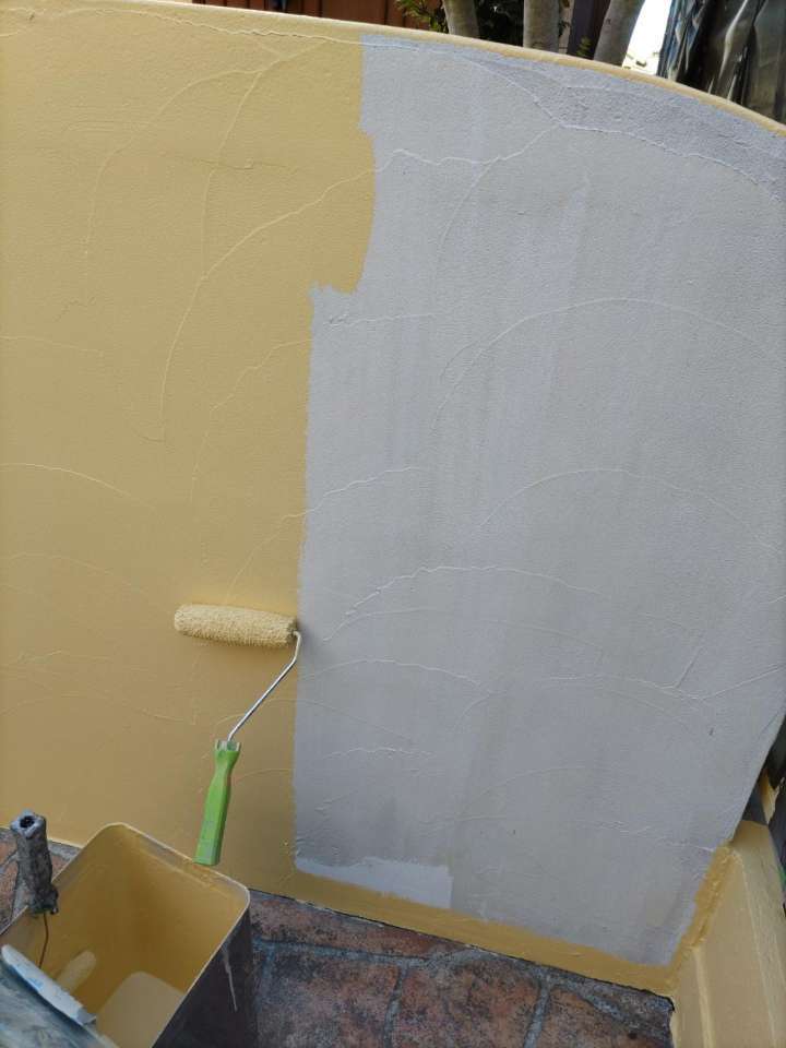 昨日の作業は、塀の劣化部分の補修作業と塀の中塗り塗装作業でした!