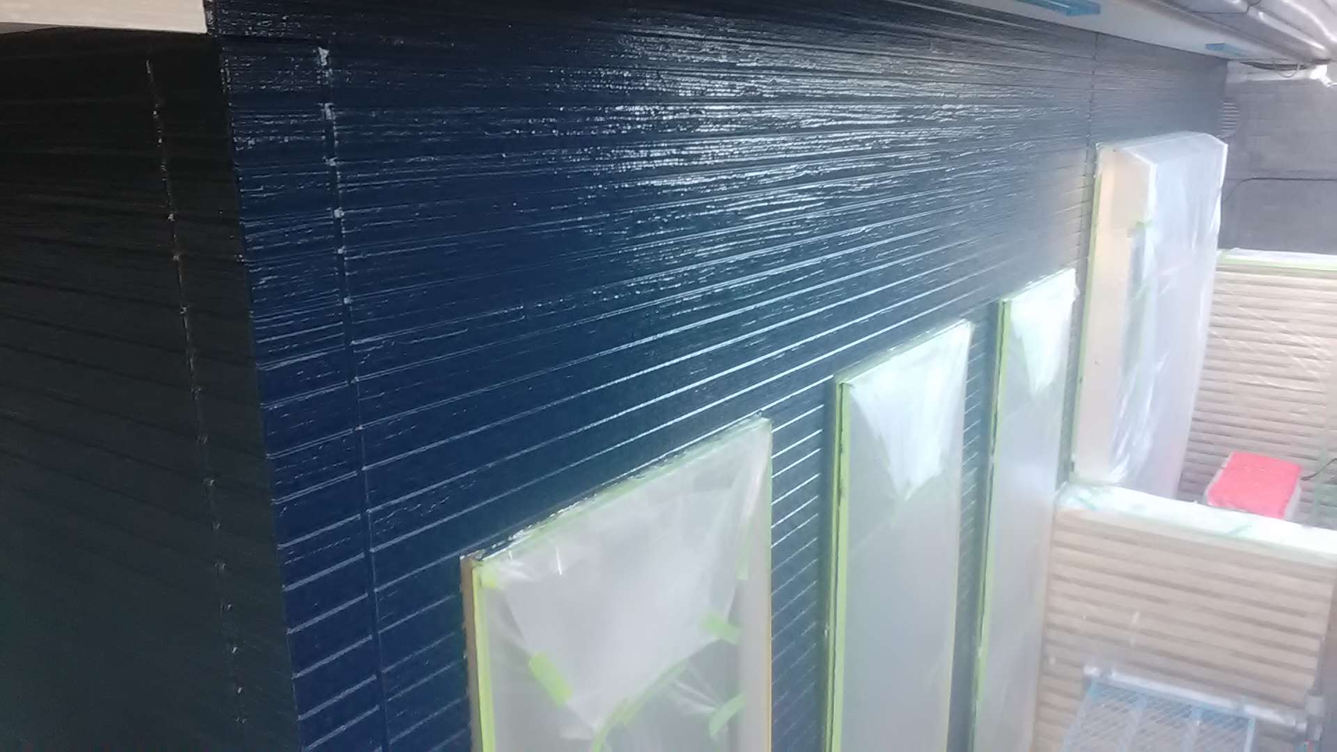 昨日の作業は、外壁の中塗り作業でした。