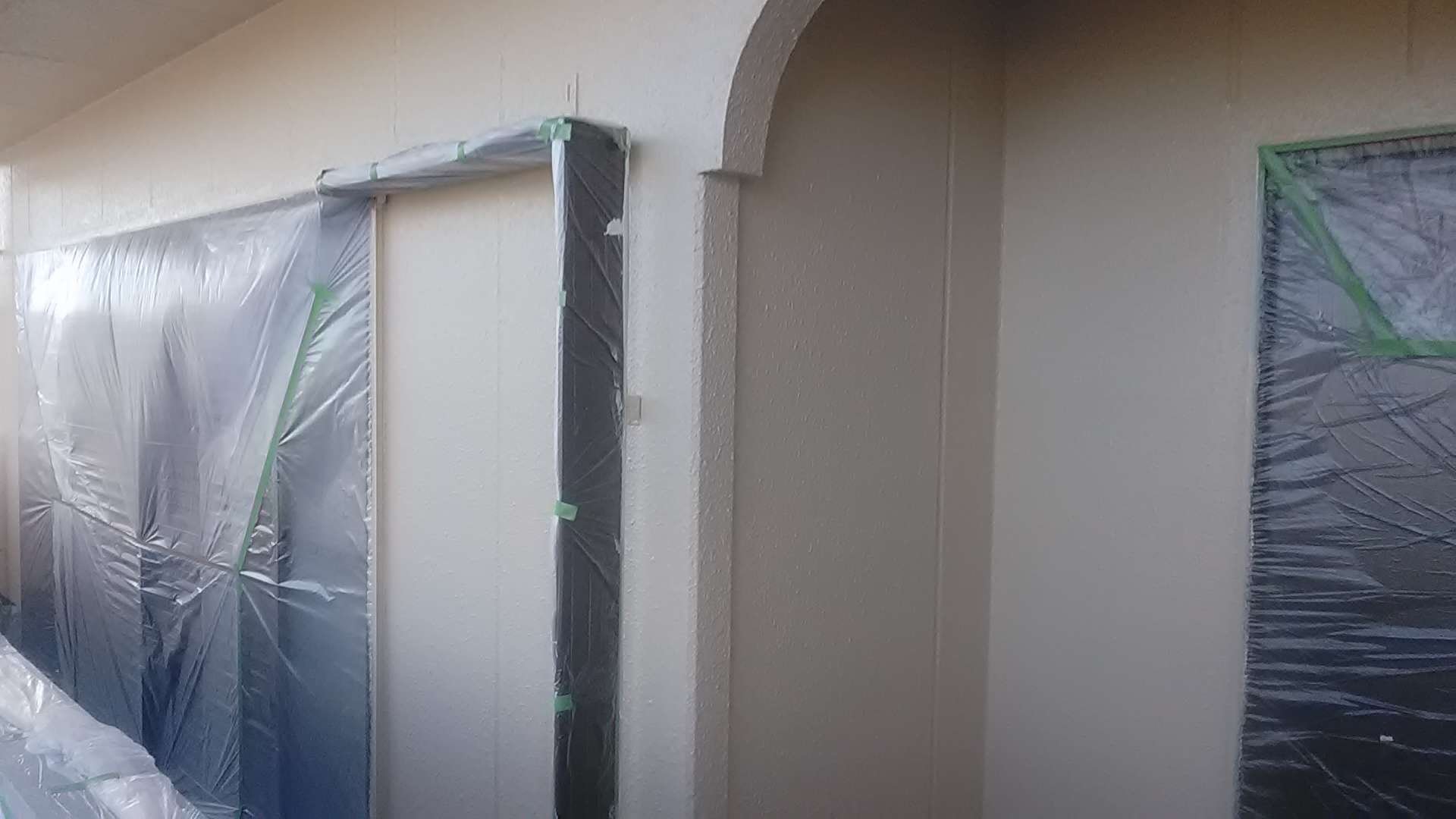 昨日までの作業内容、外壁の中塗り作業が完了しています。