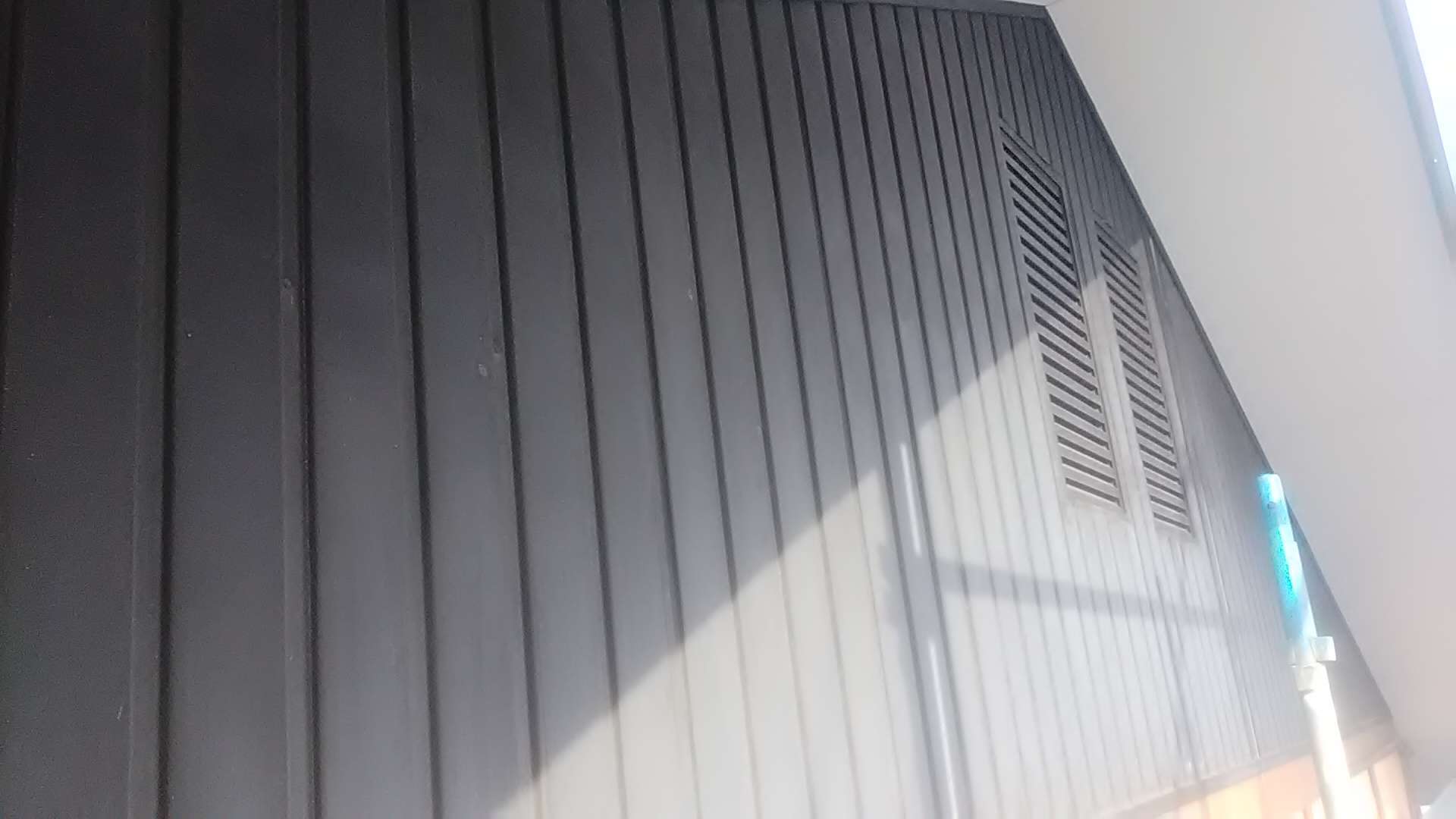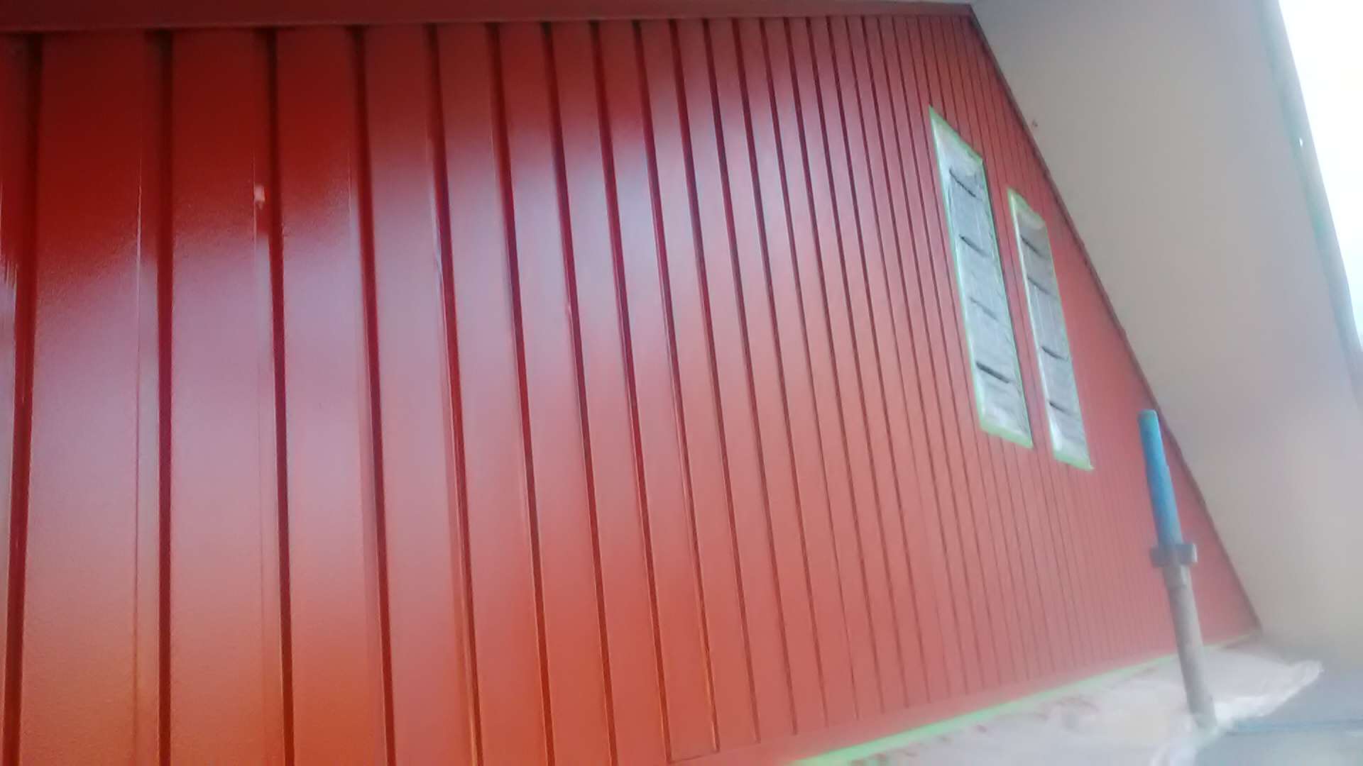 昨日までの作業は、養生作業、屋根中塗り作業、錆止め塗装作業を行っています。
