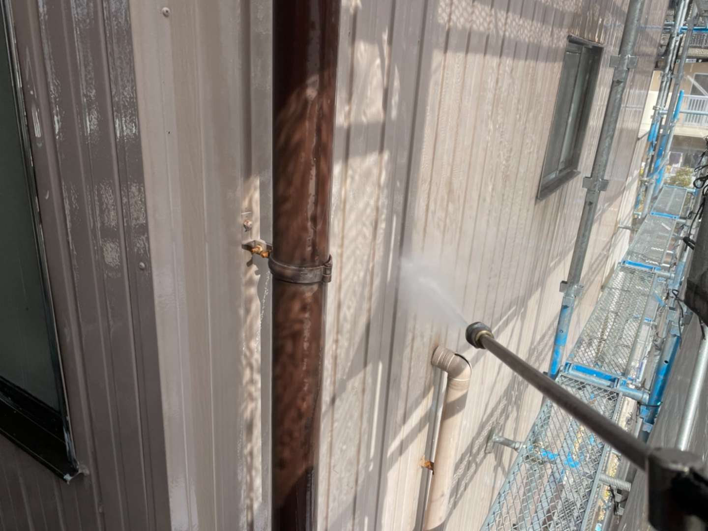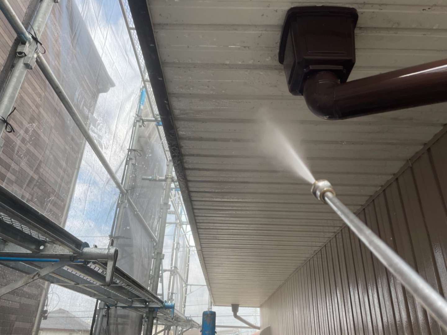名古屋市名東区 K様邸 外壁塗り替え工事 洗浄作業が終わり、今日は養生作業です! 洗浄作...