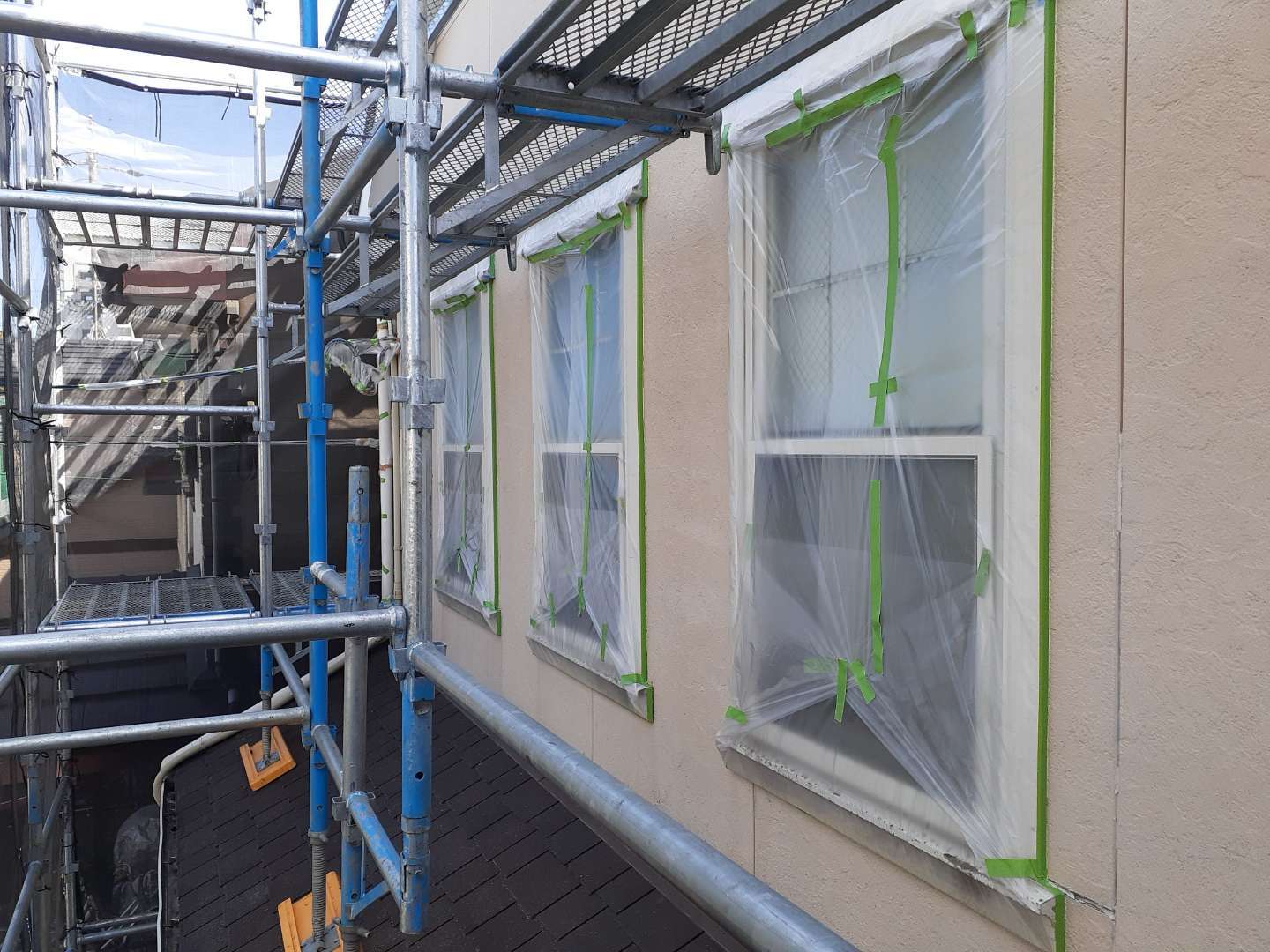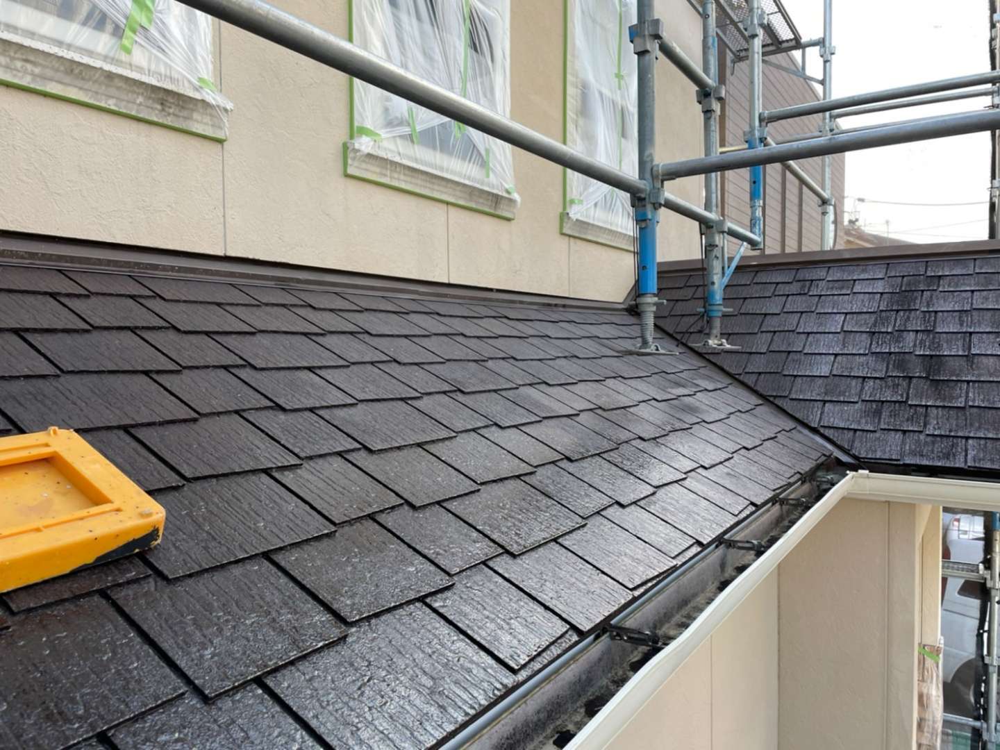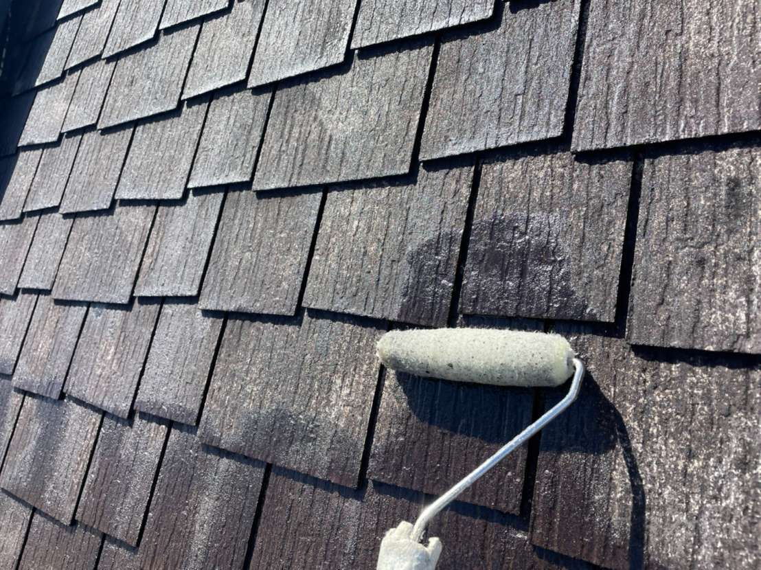 昨日までの作業で、洗浄作業・養生作業・屋根の下塗り塗装作業が完了しています!