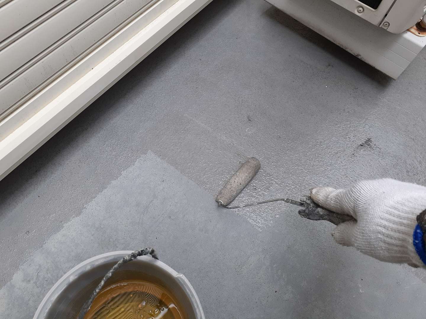 ベランダのプライマー塗装作業