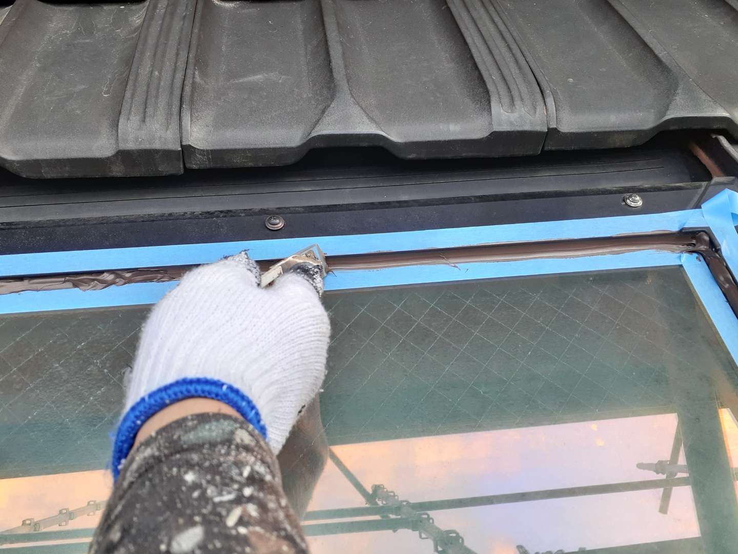 天窓コーキング補修作業
