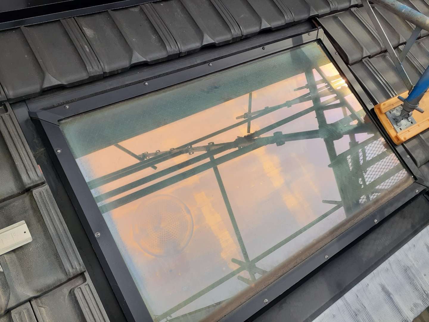 昨日までの作業は、付帯部塗装作業と天窓のコーキング補修作業でした。