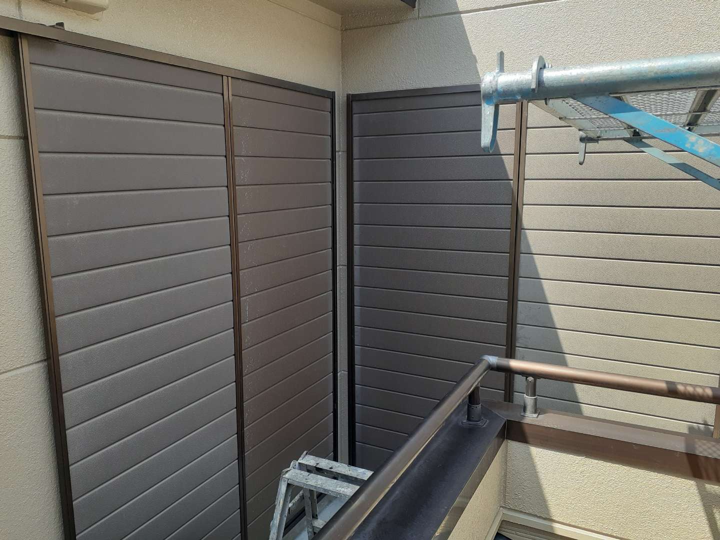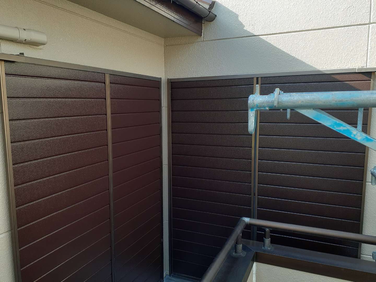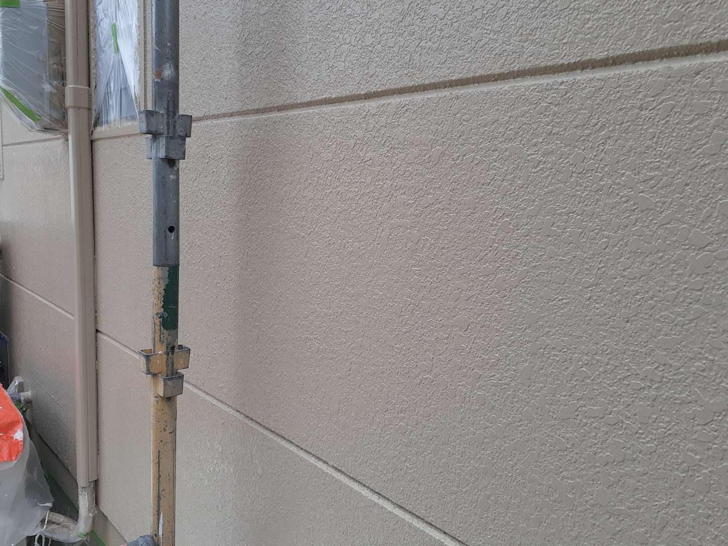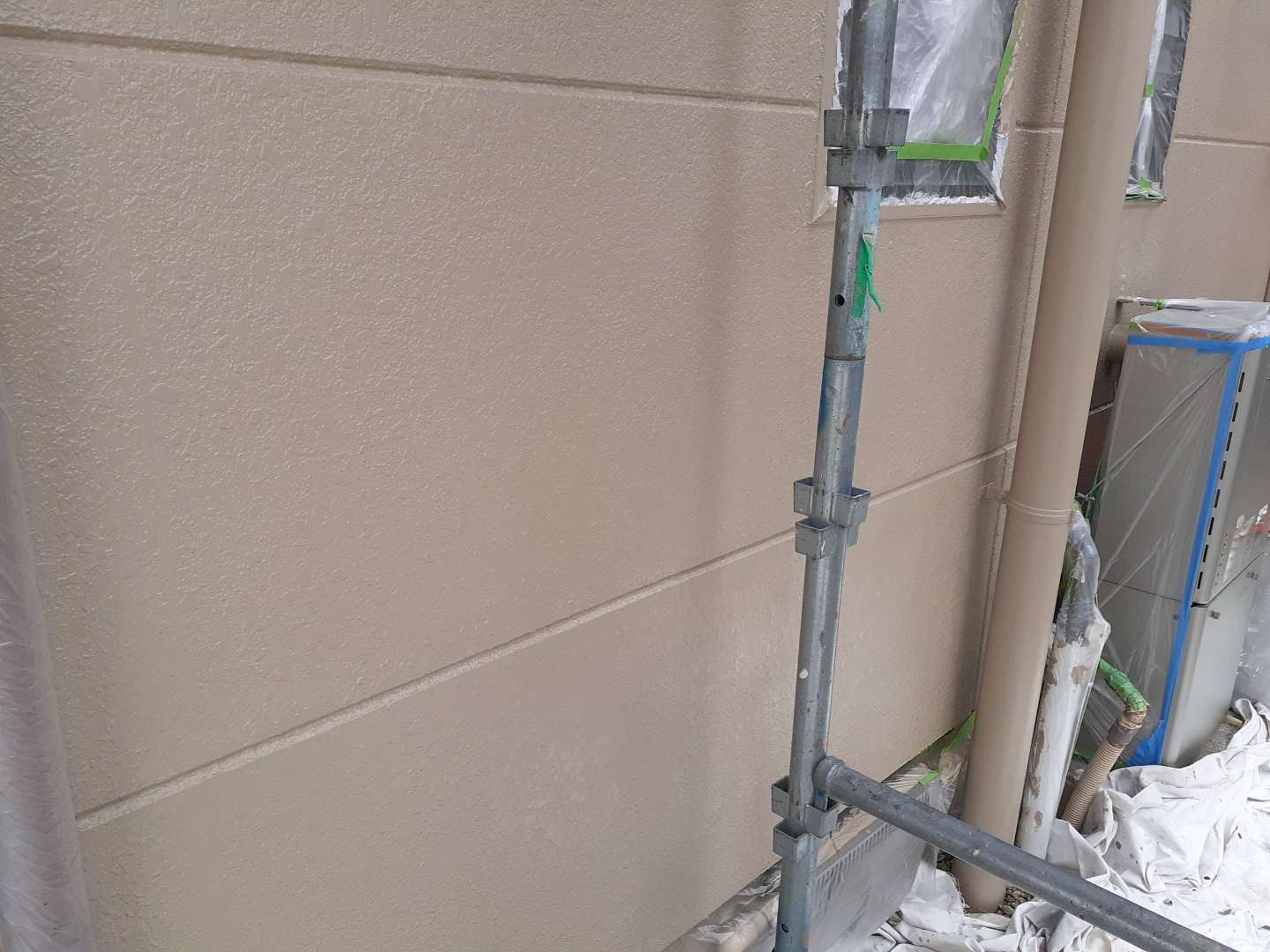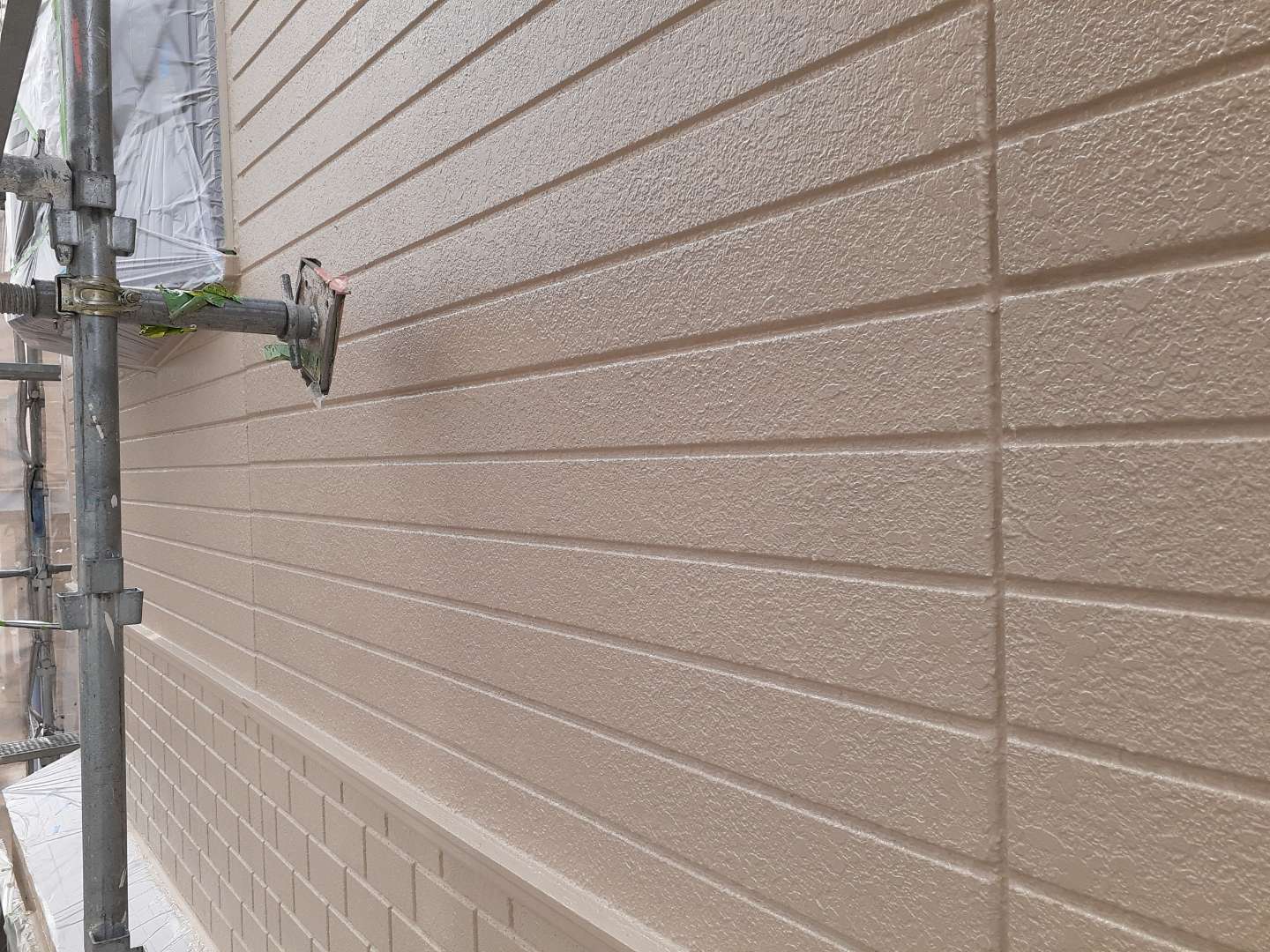 昨日までの作業は、外壁の上塗り塗装・軒天塗装・破風板コーキング・付帯部塗装作業でした。