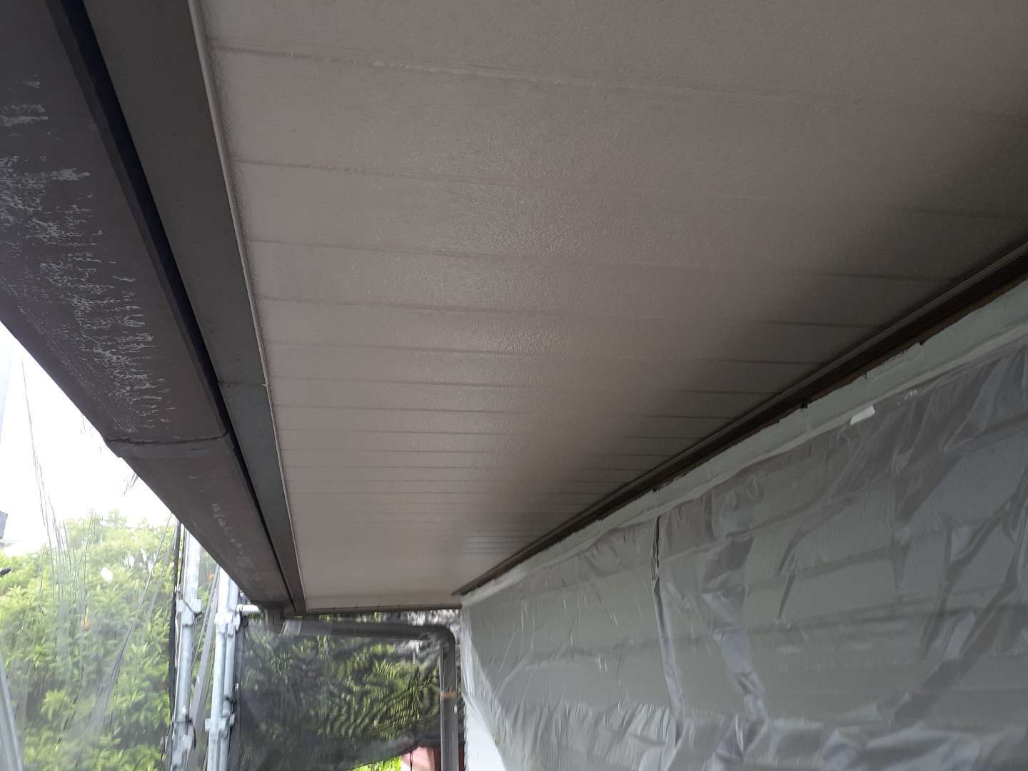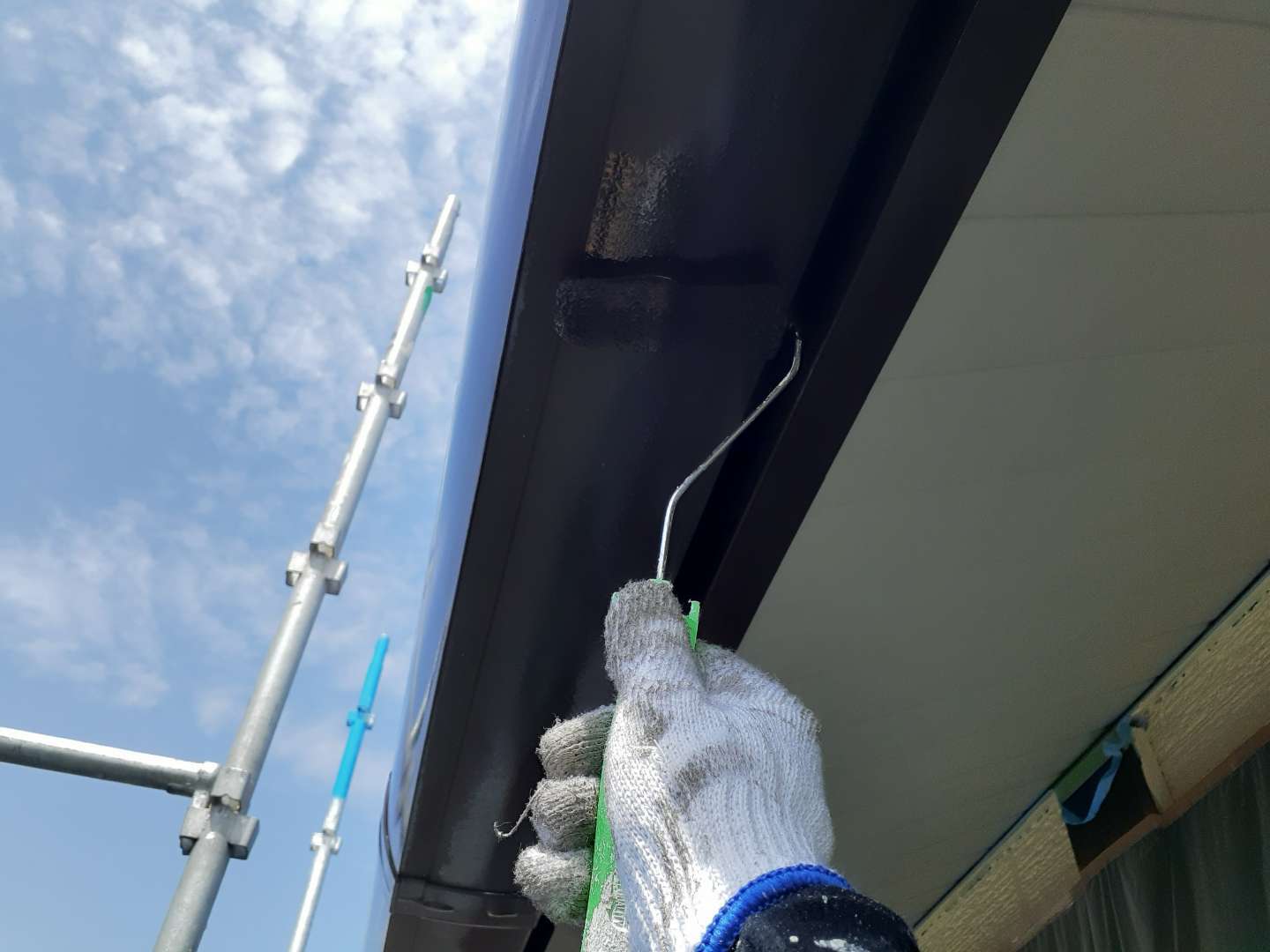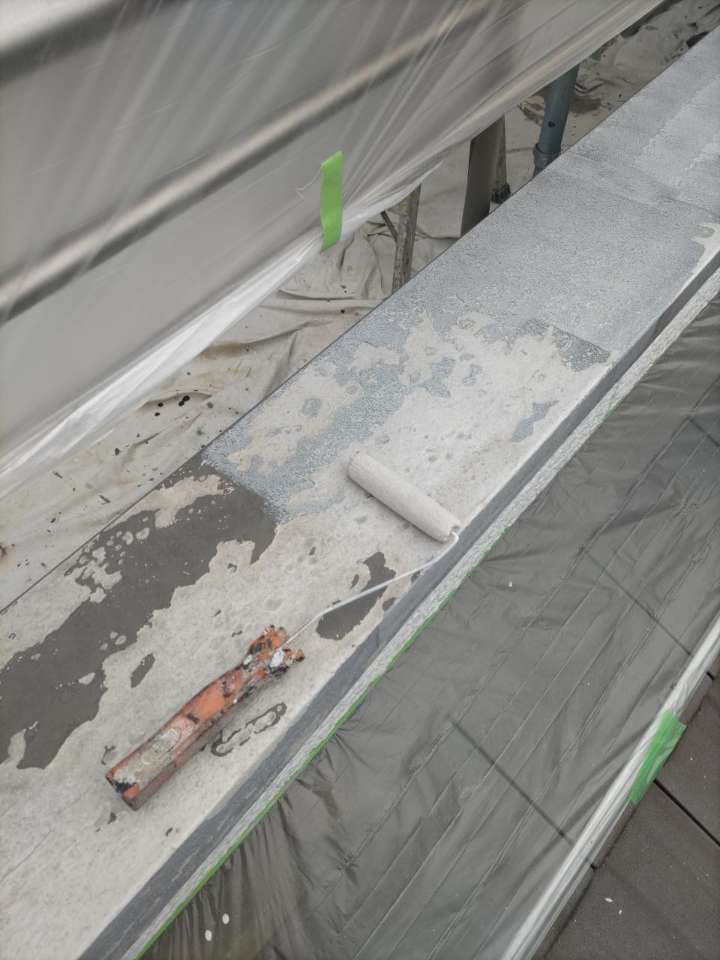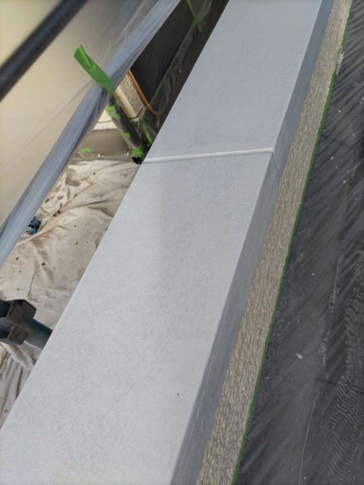 昨日の作業は、笠木の補修・軒天塗装・中塗り塗装・付帯部塗装作業でした。