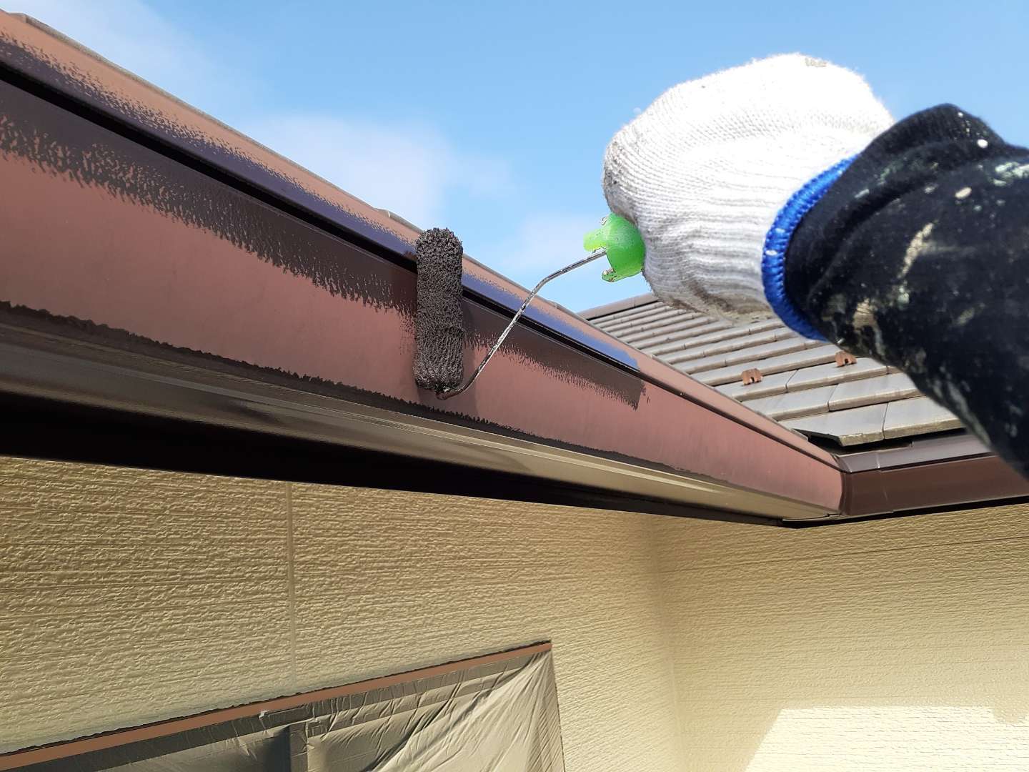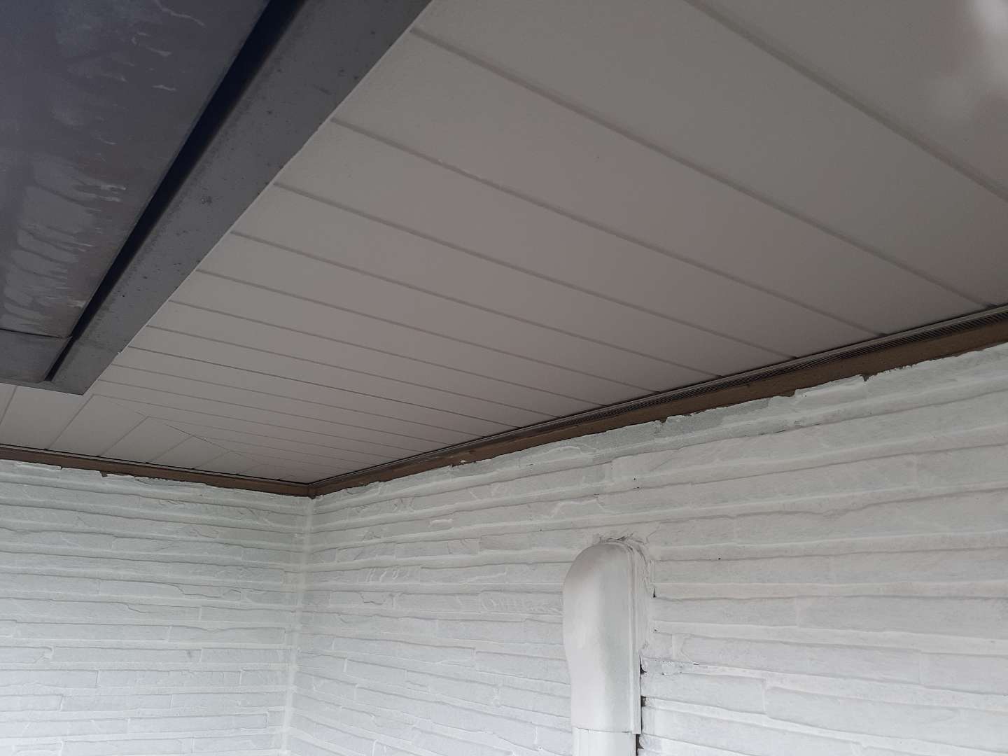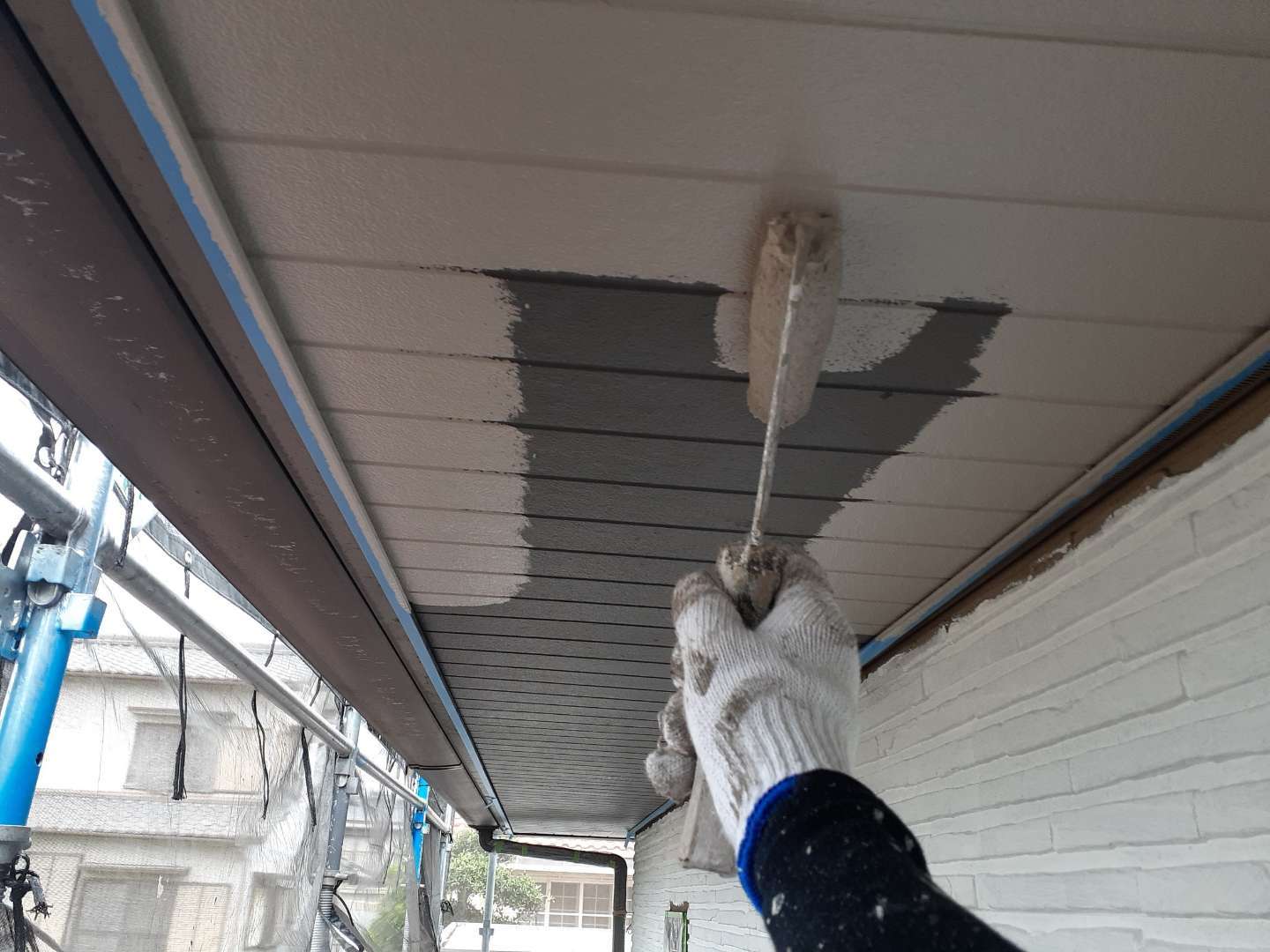 昨日の作業は、笠木の補修・軒天塗装・中塗り塗装・付帯部塗装作業でした。