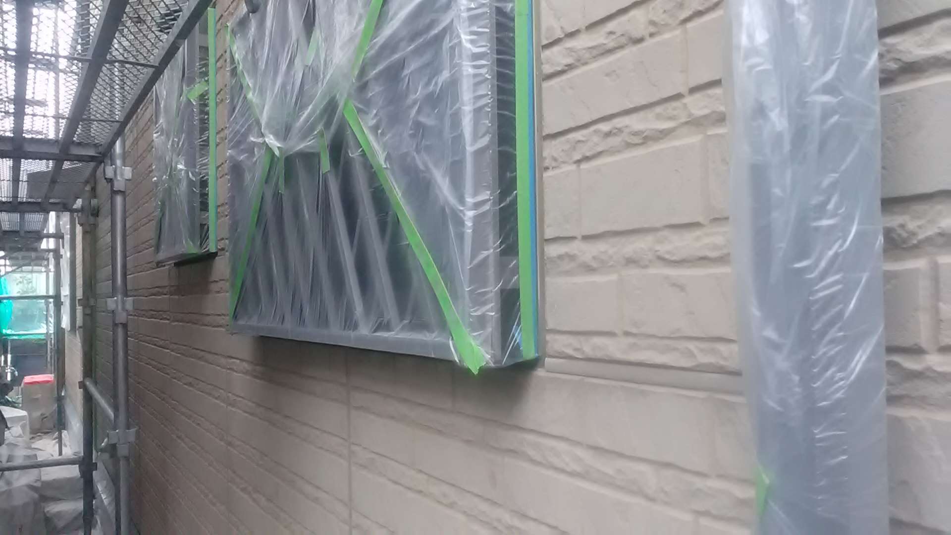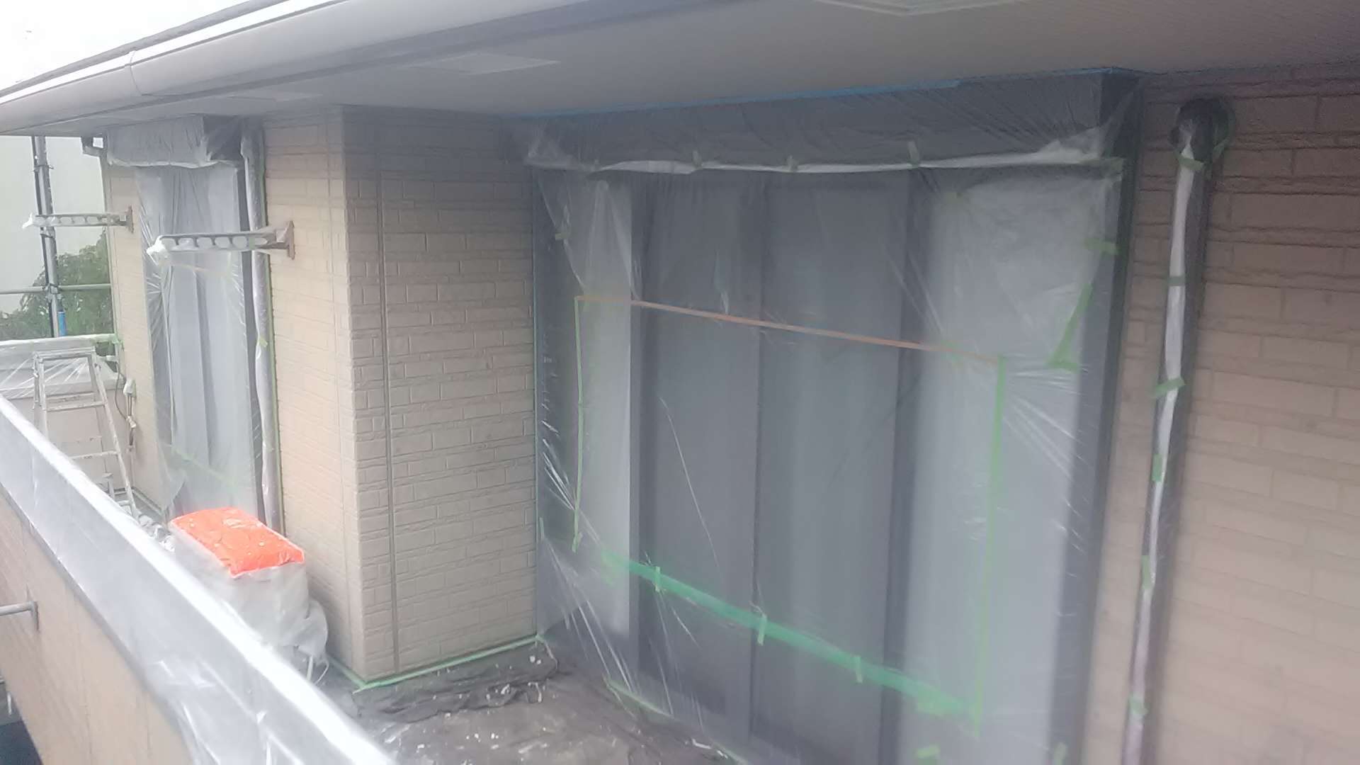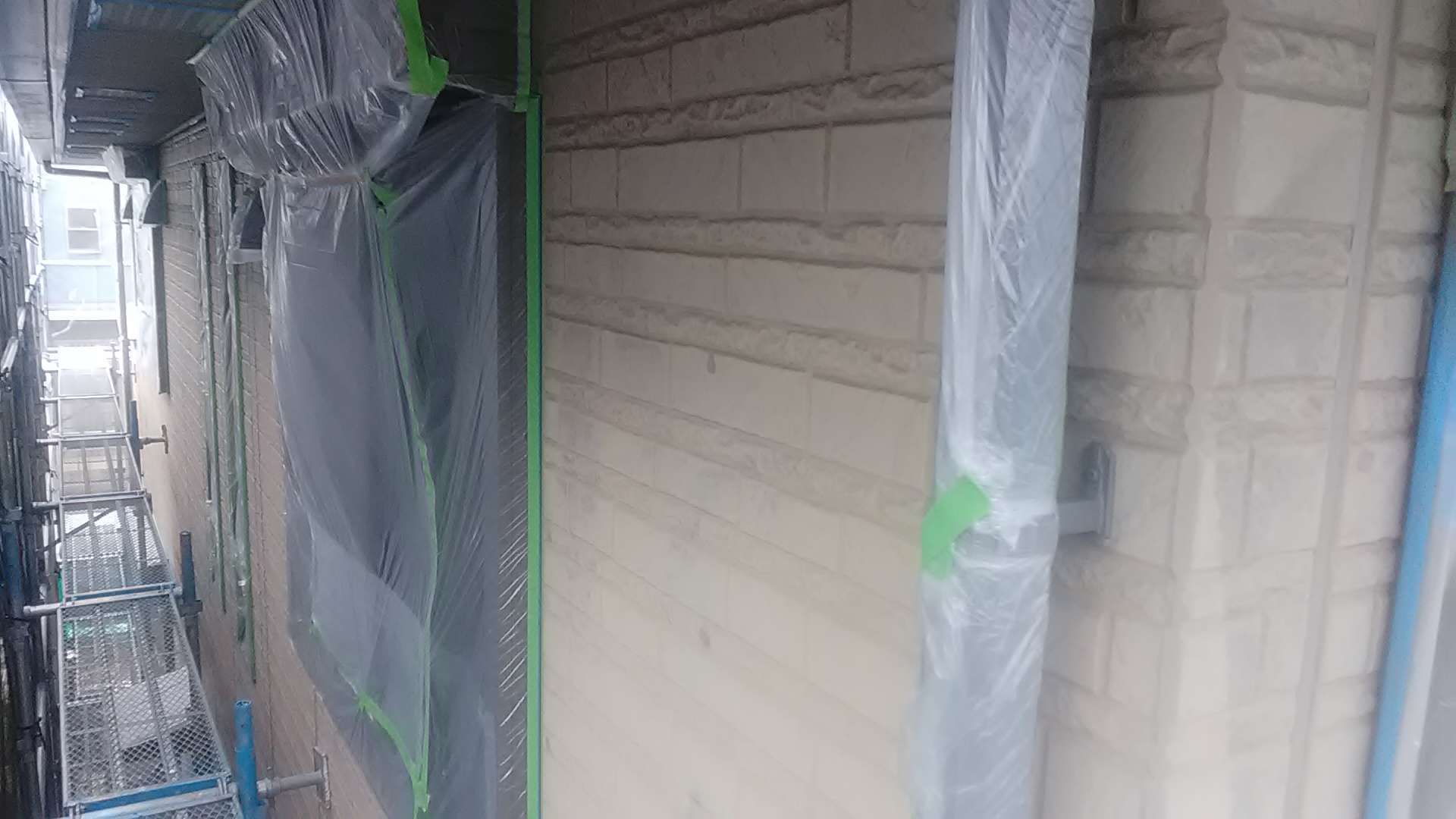 昨日の作業は、養生作業と外壁下塗り塗装作業でした。