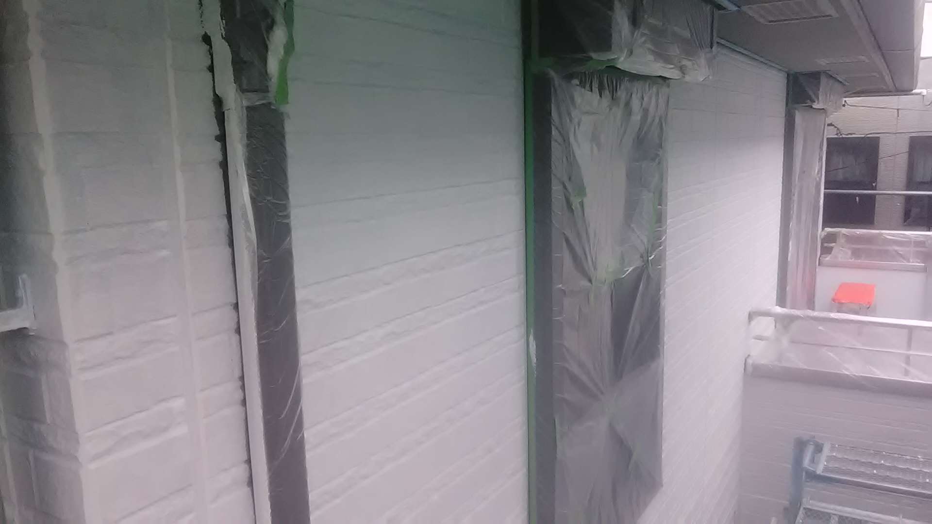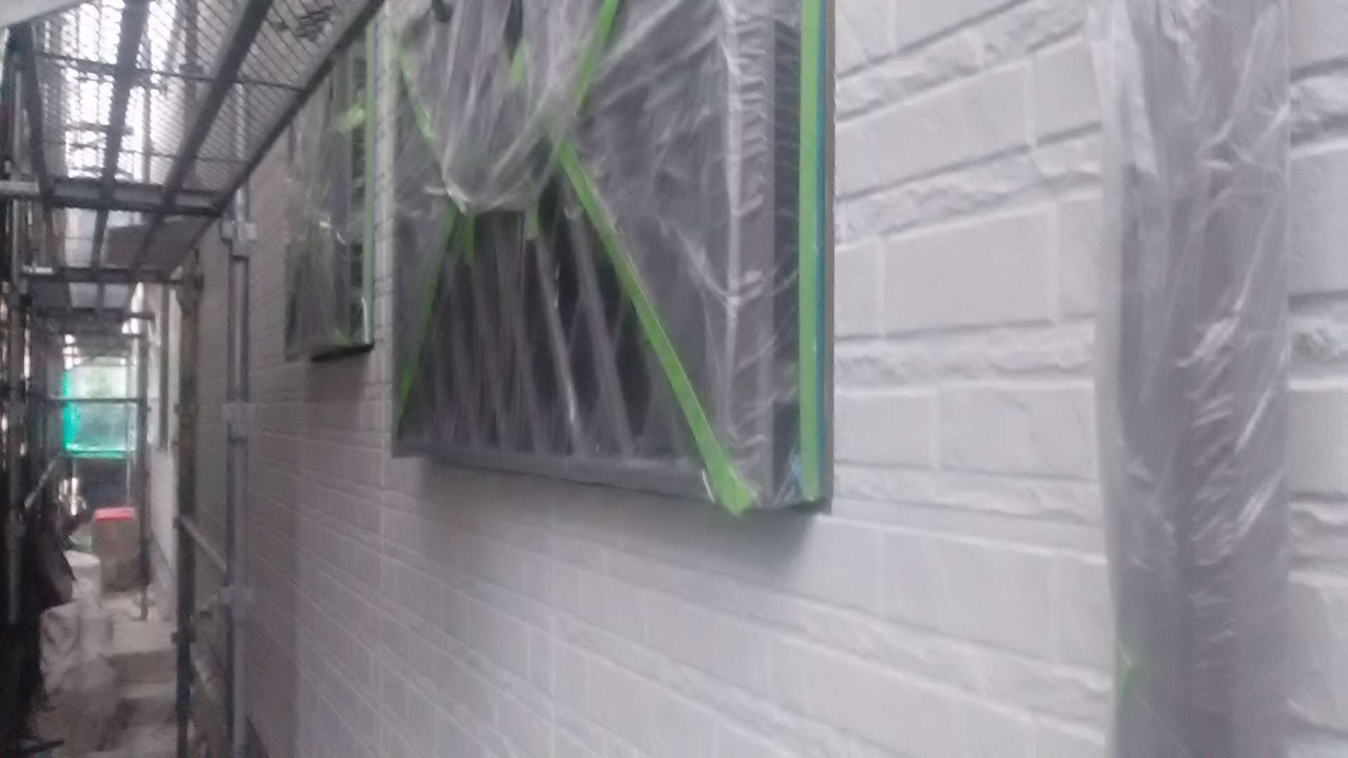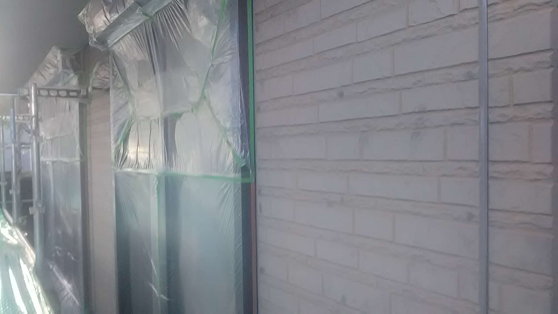 昨日の作業は、養生作業と外壁下塗り塗装作業でした。
