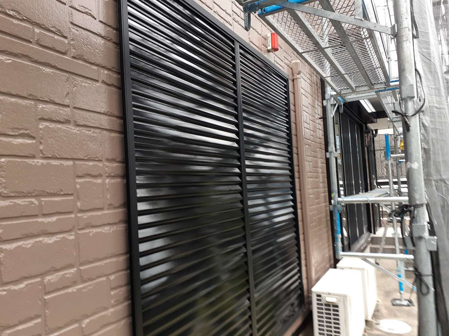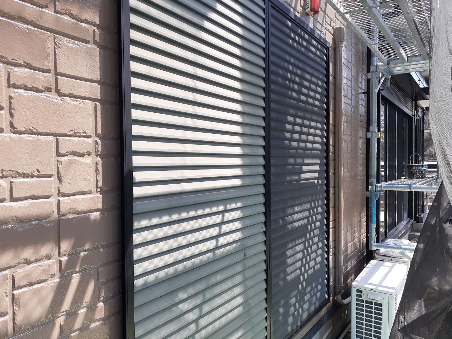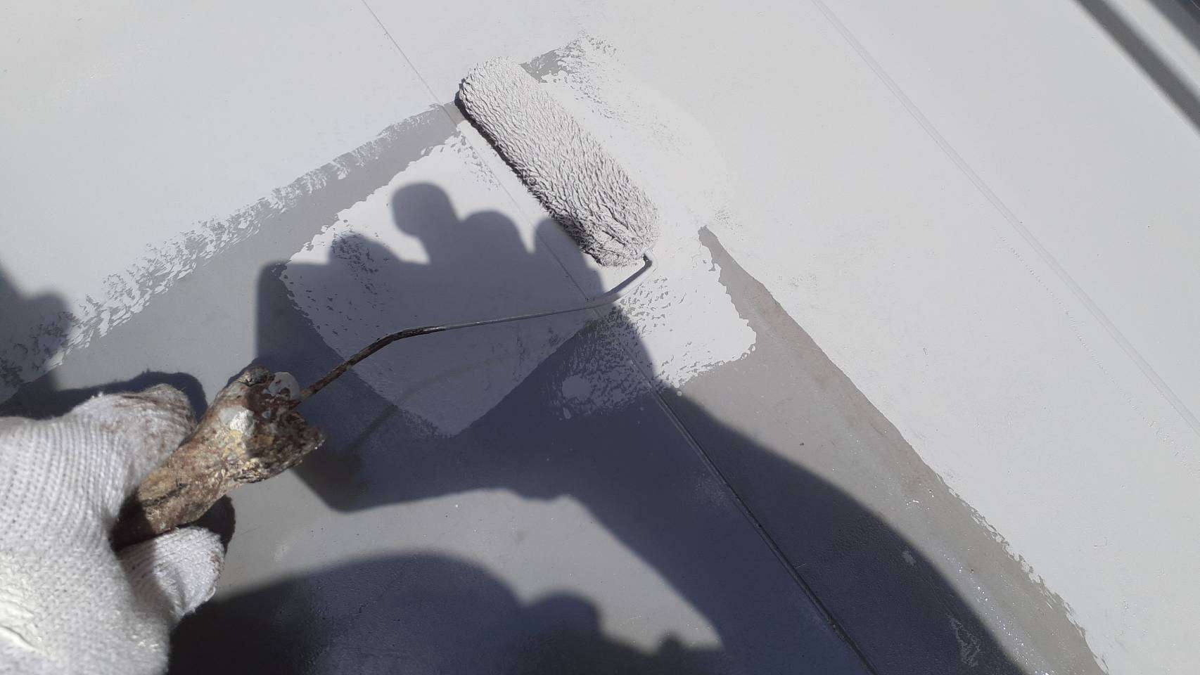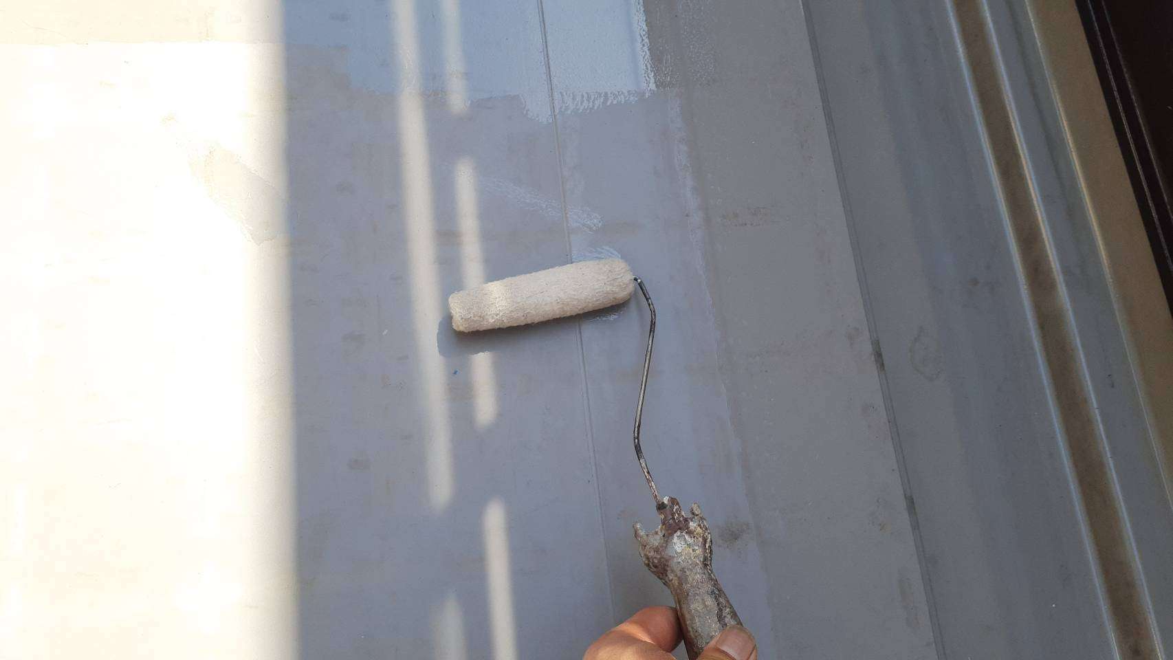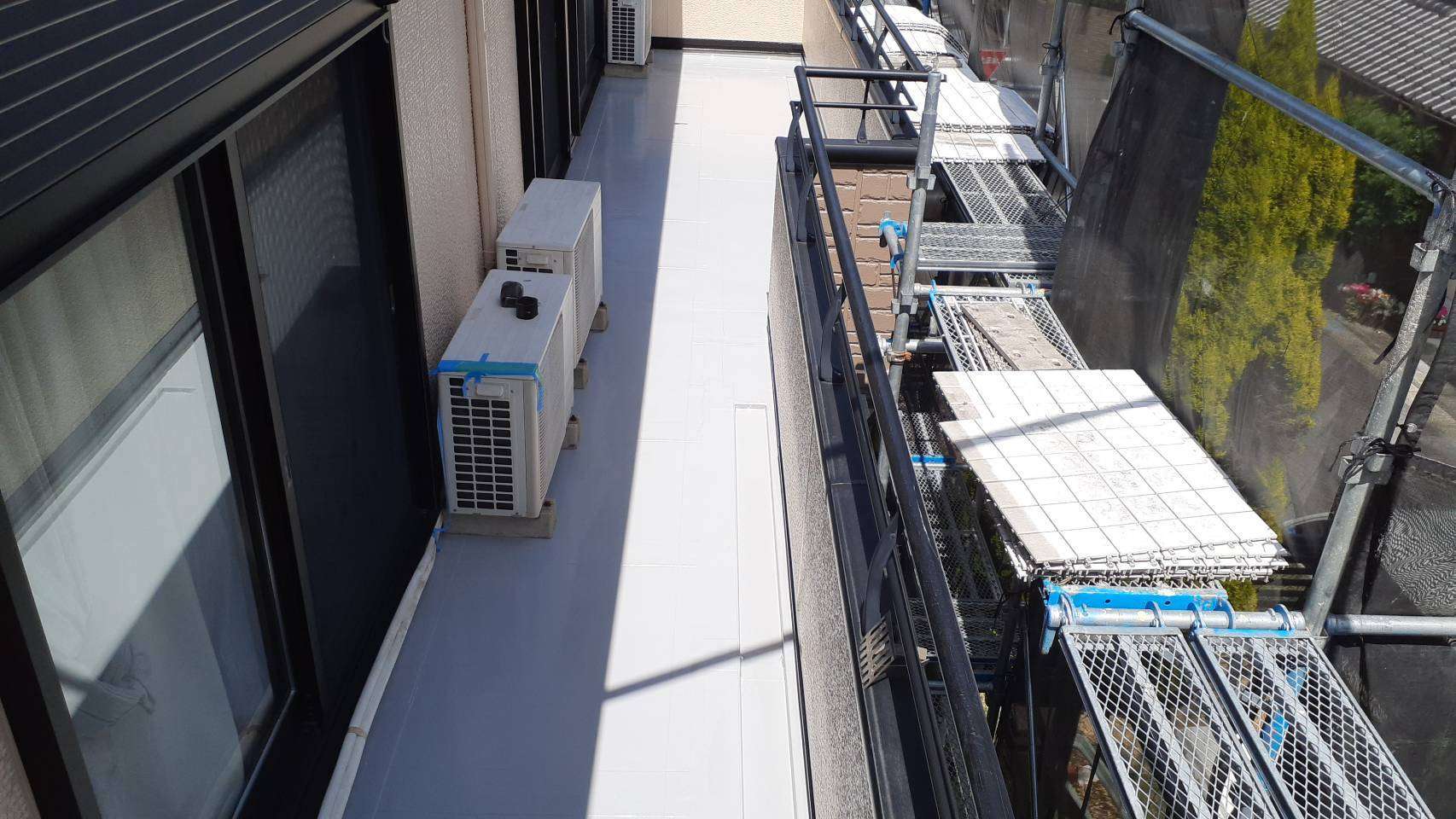 昨日の作業は、ベランダトップコート塗装と雨戸塗装作業でした。