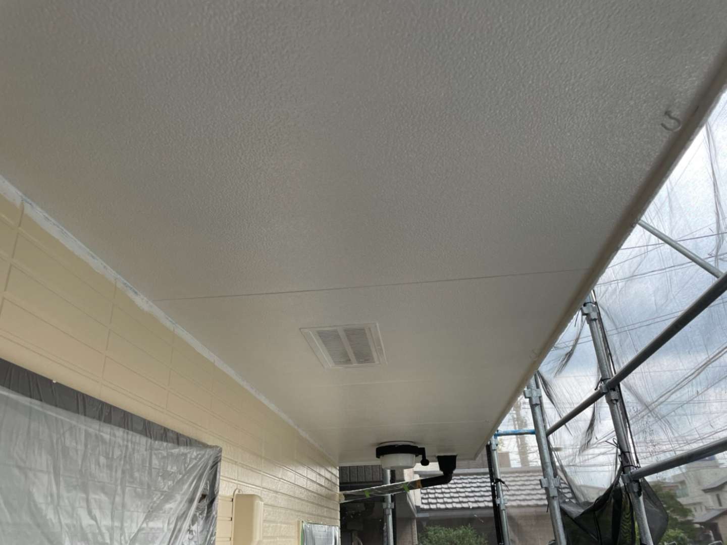 昨日までの作業で、軒天塗装作業・外壁上塗り塗装作業・屋根下塗り塗装作業が完了しました!