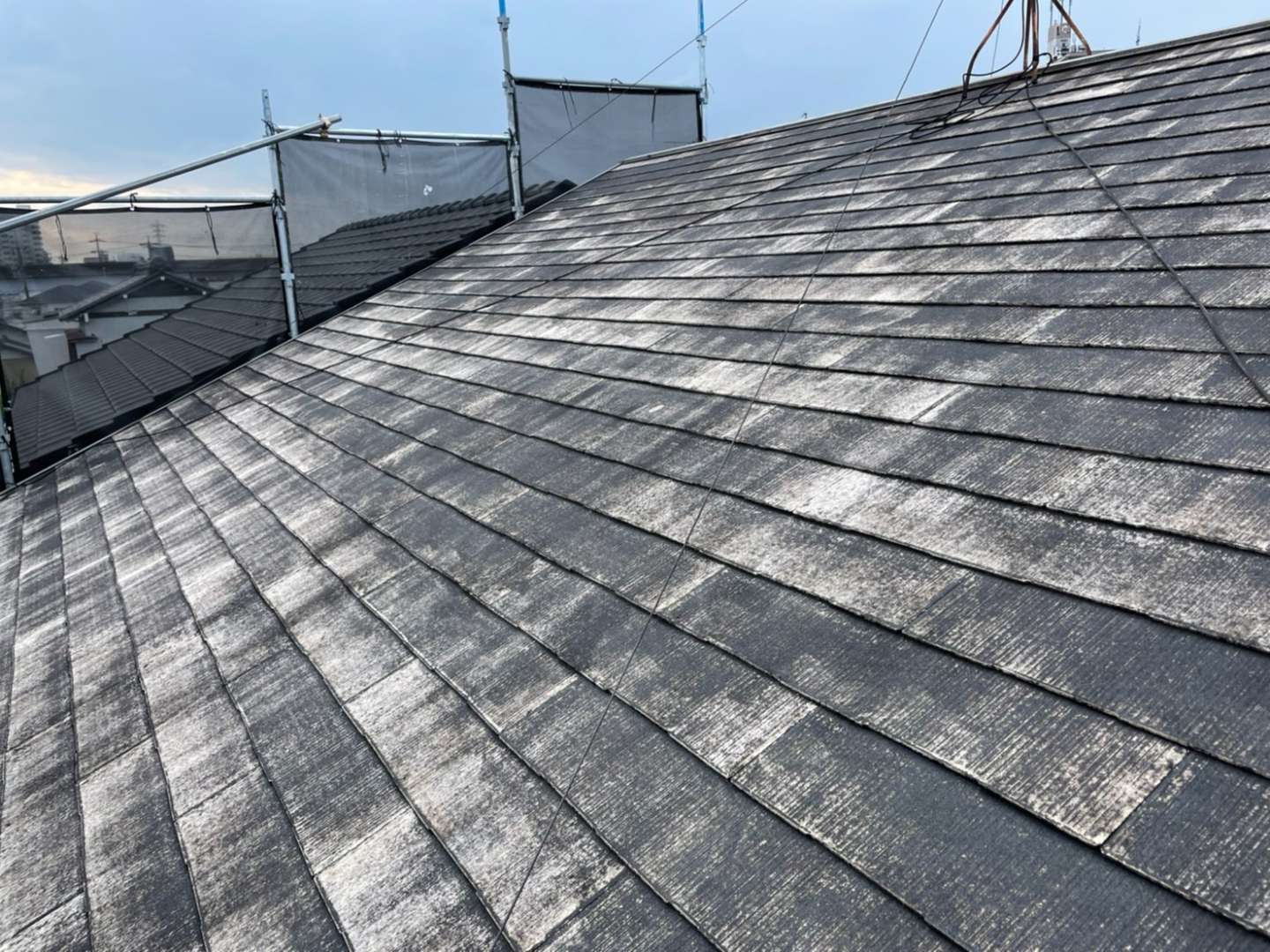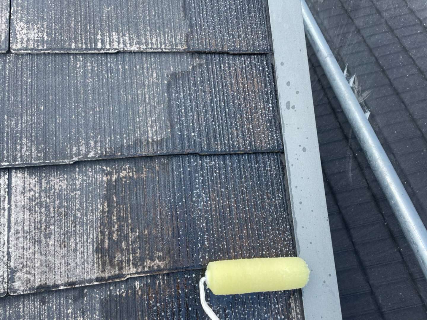 今日の作業は、屋根中塗り塗装作業と付帯部塗装作業予定です!