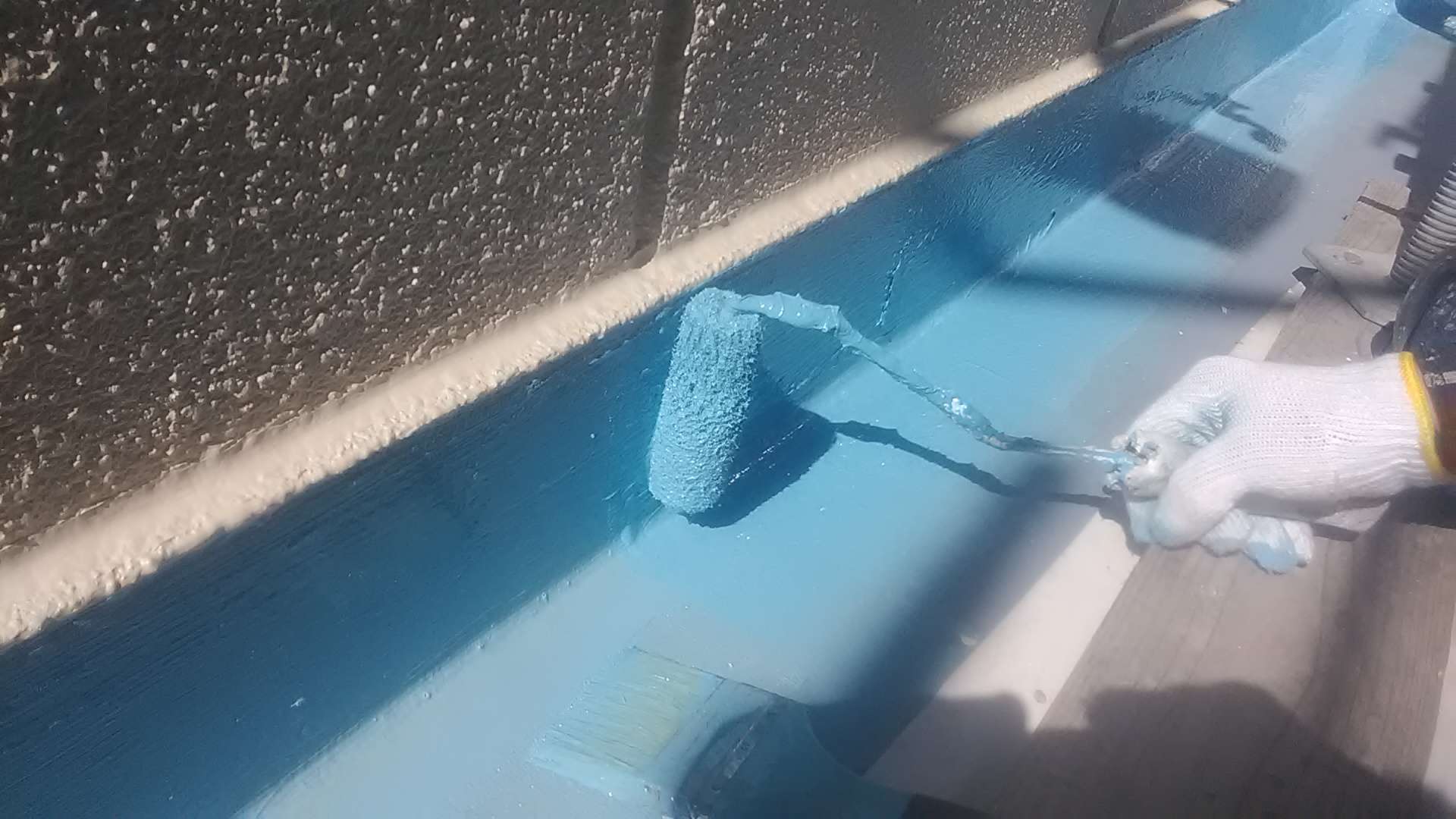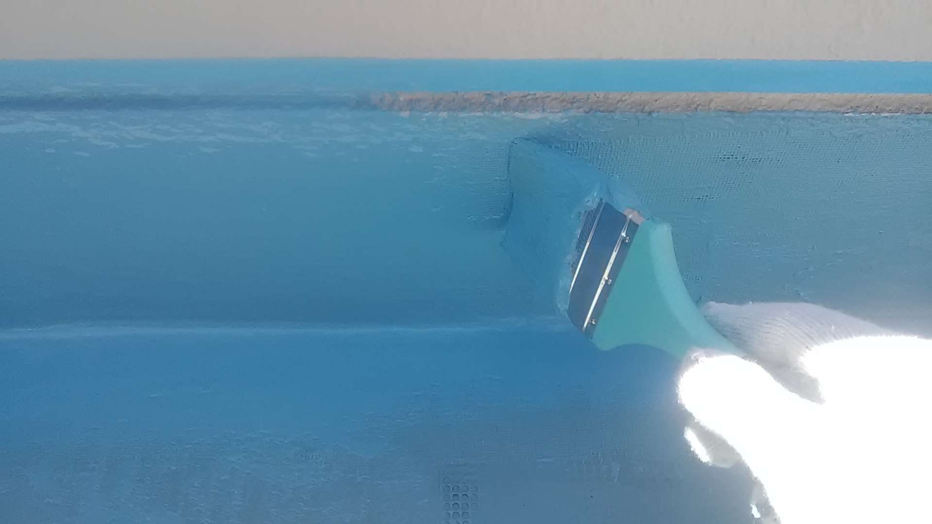 バルコニー立上り部二回目ウレタン樹脂塗装作業