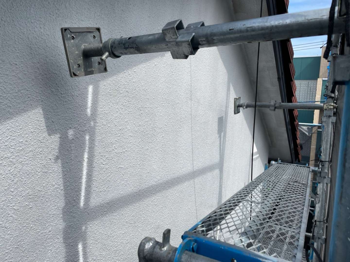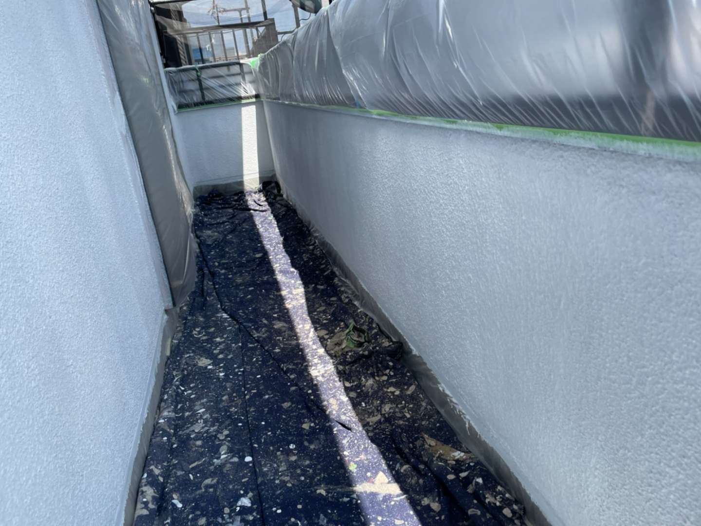 昨日の作業は、屋根下塗り塗装作業と外壁下塗り二回目塗装作業でした。