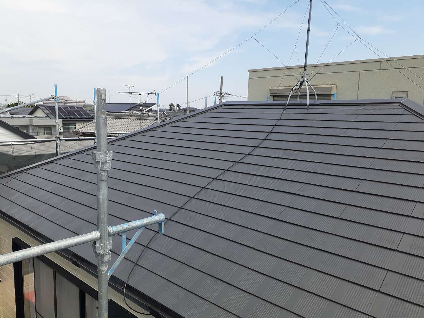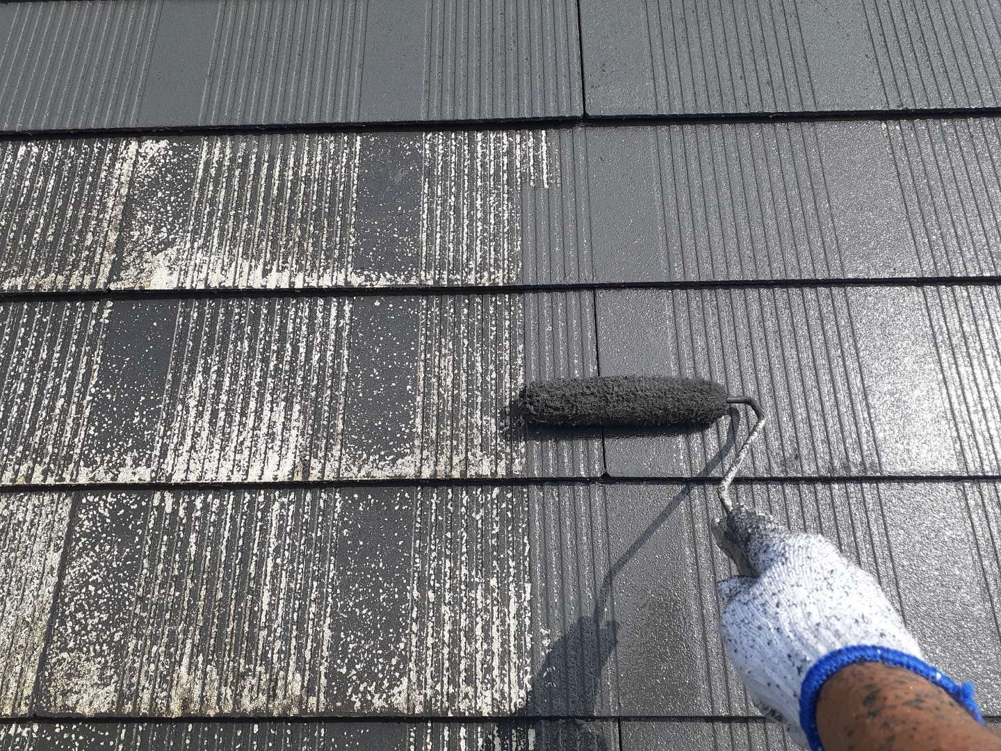 今日の作業は、屋根上塗り塗装作業と付帯部塗装作業予定です!