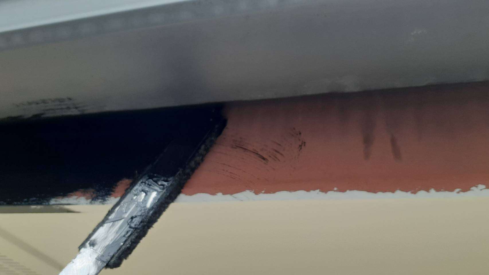 昨日の作業は、屋根の中塗り塗装作業と付帯部塗装作業でした。