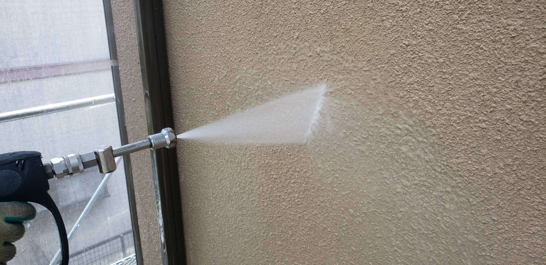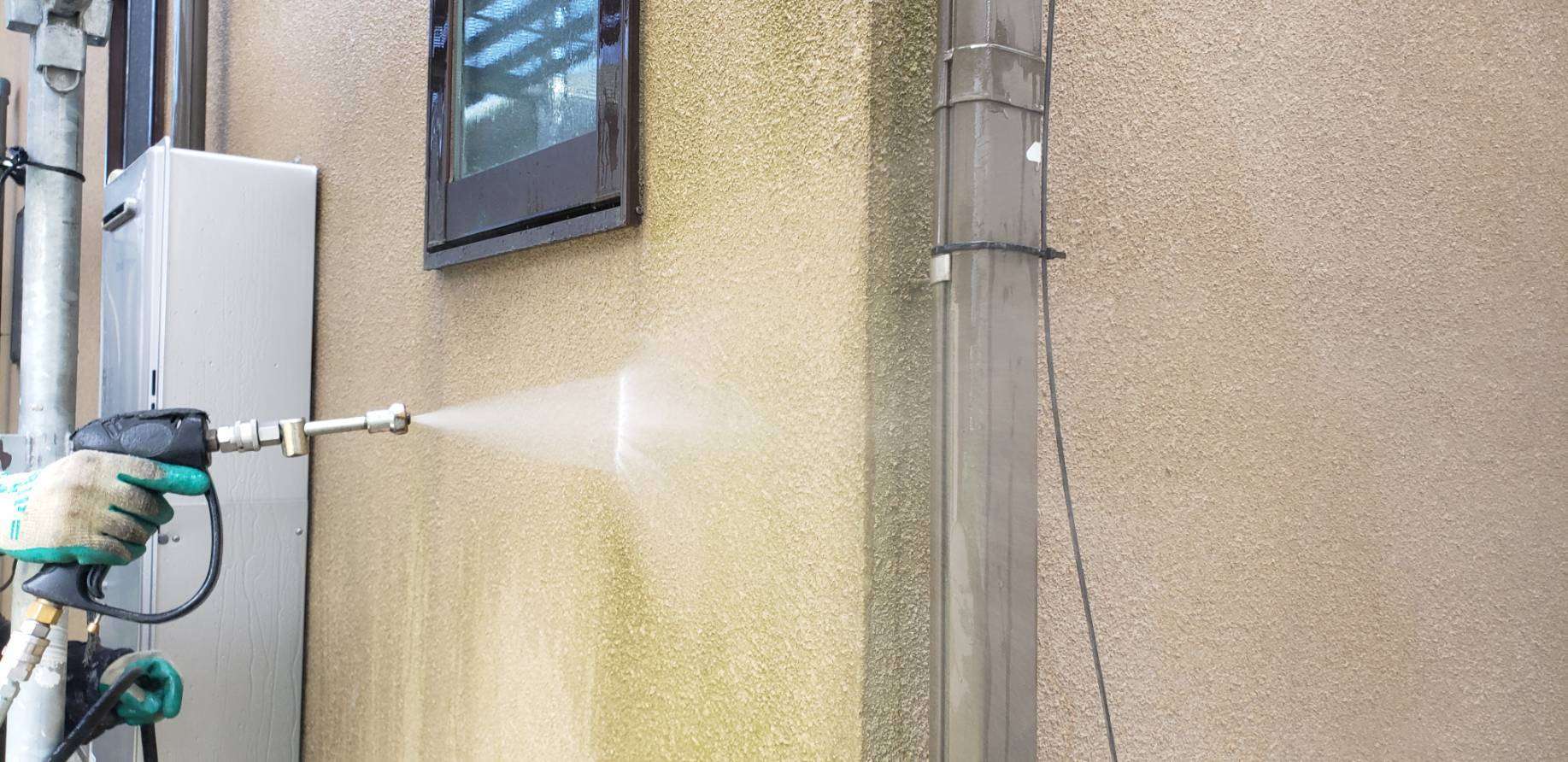 名古屋市名東区 K様邸 外壁塗り替え工事 洗浄作業が終わり、今日は養生作業です! 洗浄作...