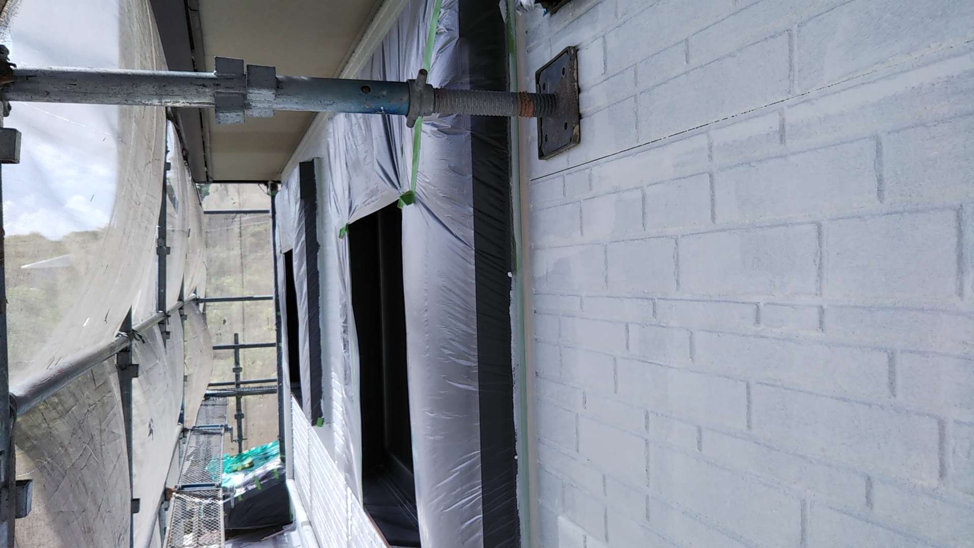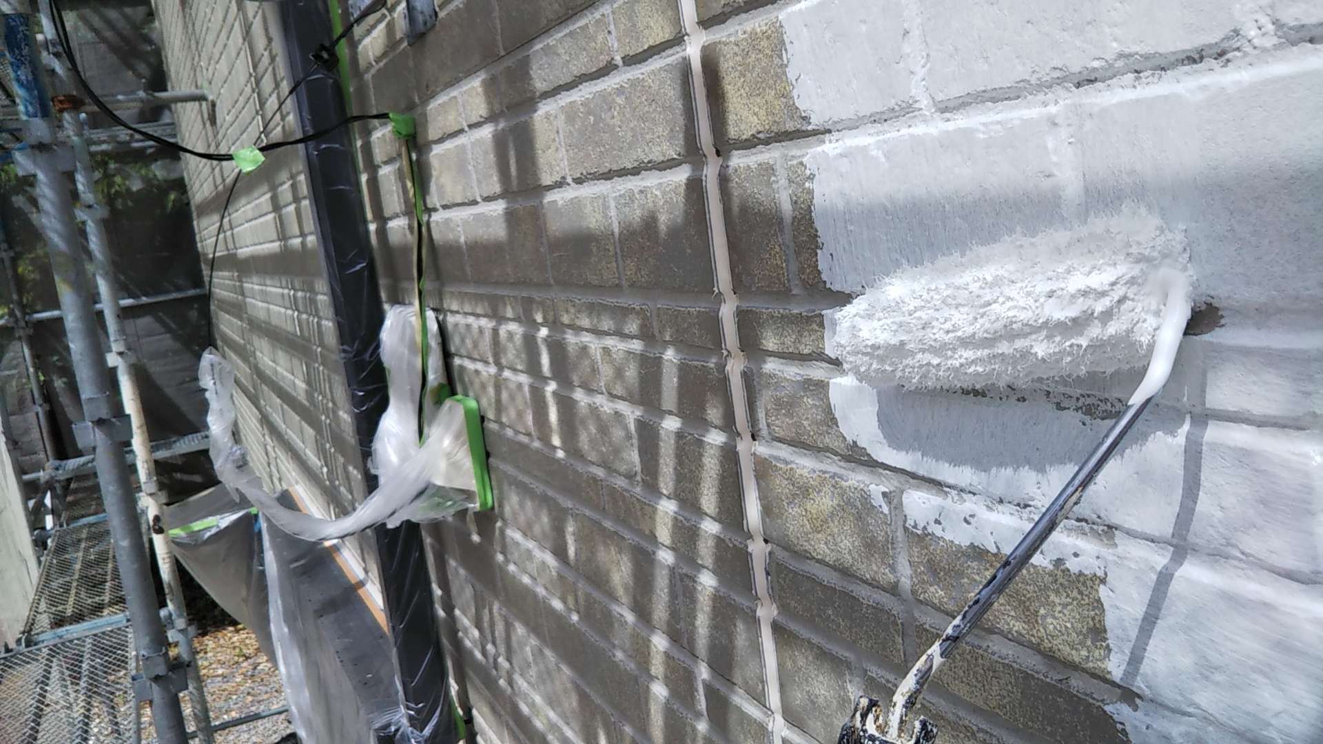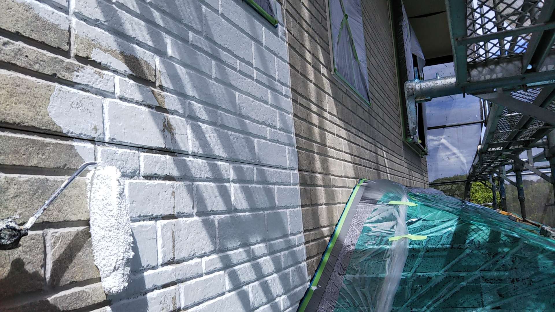 昨日の作業は、外壁の下塗り塗装作業でした。