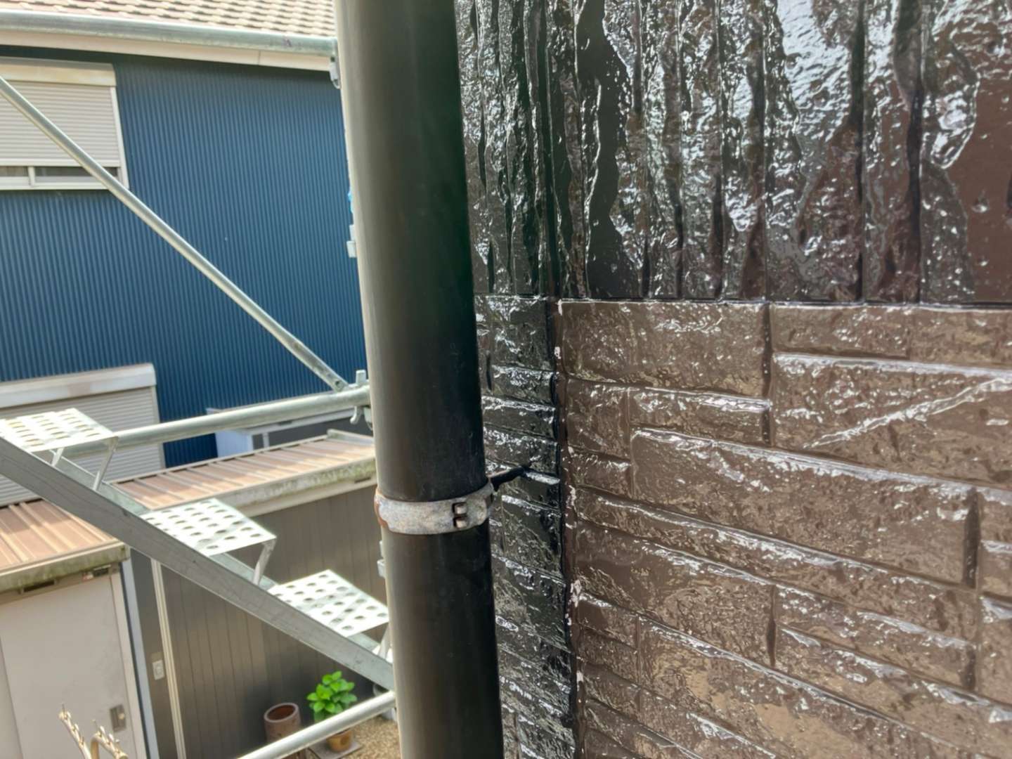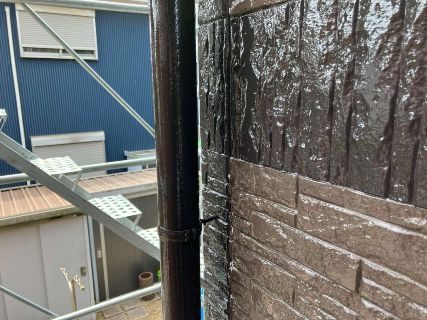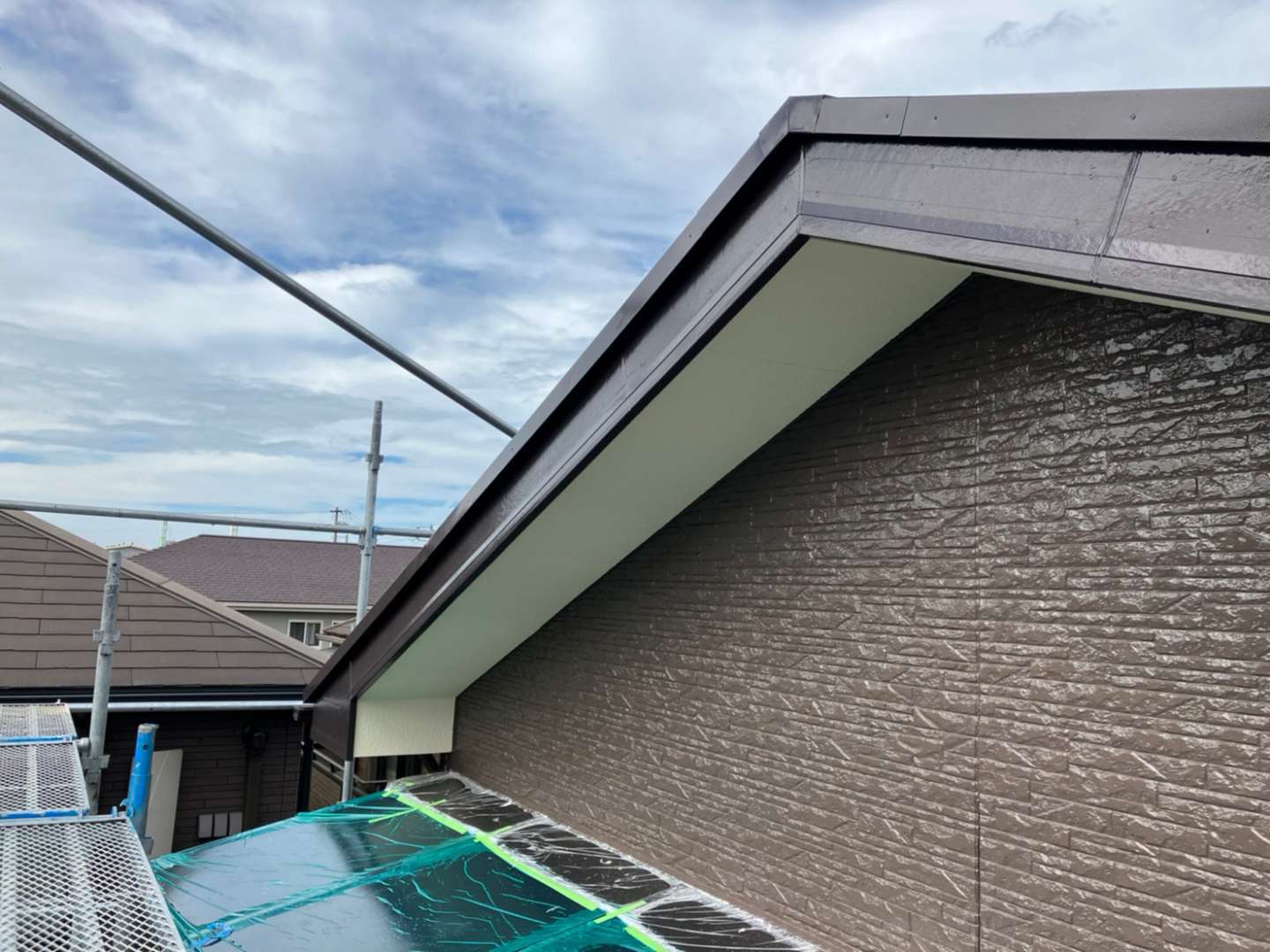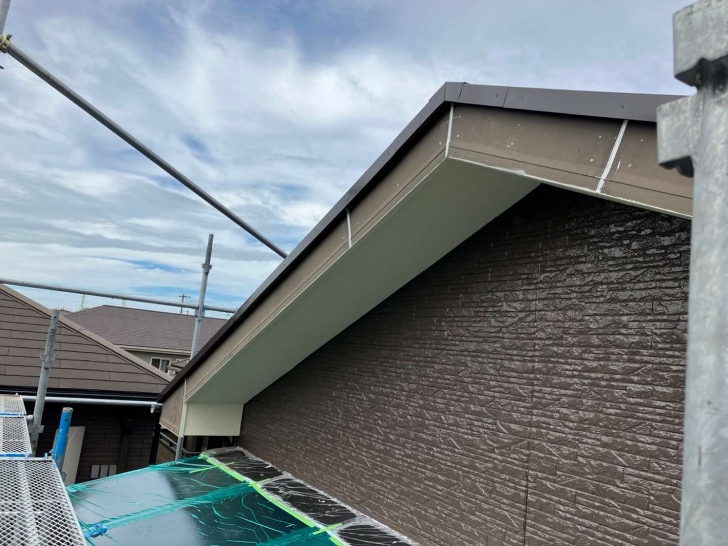 今日の作業は、付帯部塗装作業と屋根上塗り塗装作業予定です。